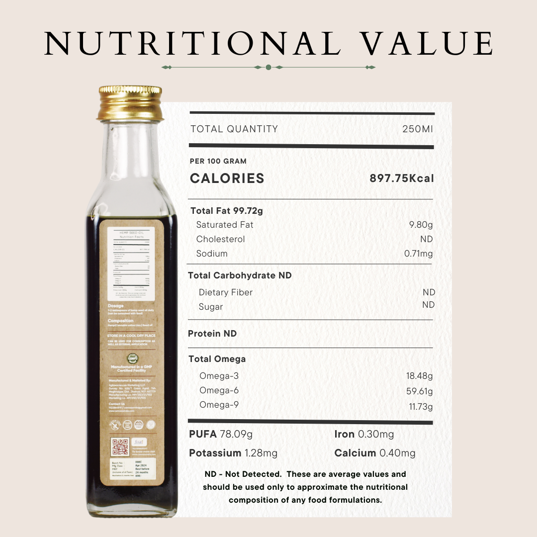 CannazoIndia® 100% Pure Cold Pressed Organic Hemp Seed Oil | 250ml | Omega-3, 6 & 9 Essential Nutrients, Vitamin-E & Amino acid, 3 Fatty acids | For Multipurpose Use Skin Hair