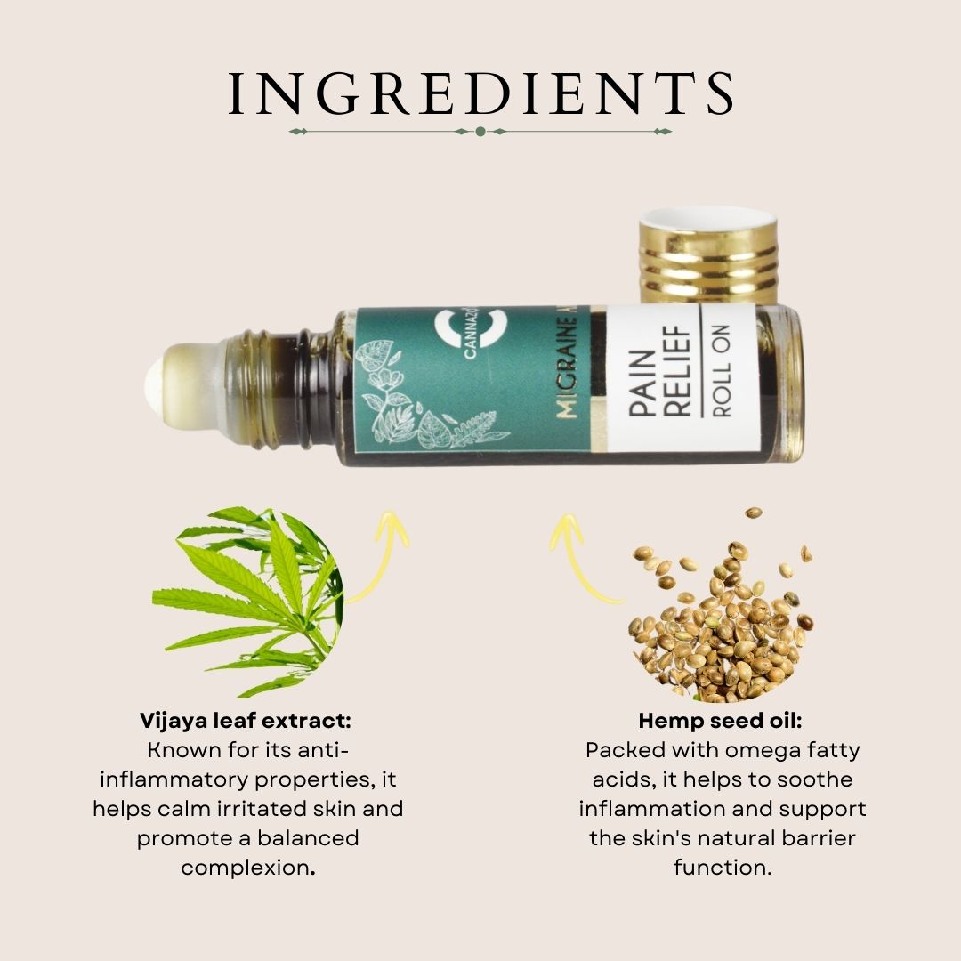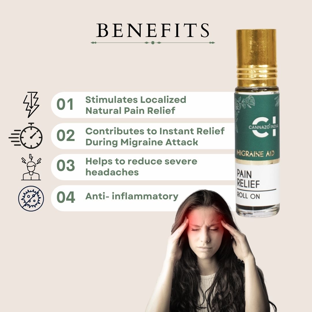 CannazoIndia® Migraine Aid | 10ml - 720mg | Best Ayurvedic Pain Relief Roll-on, For Severely Painful Headaches | Anti-Inflammatory & Analgesic | 100% Natural