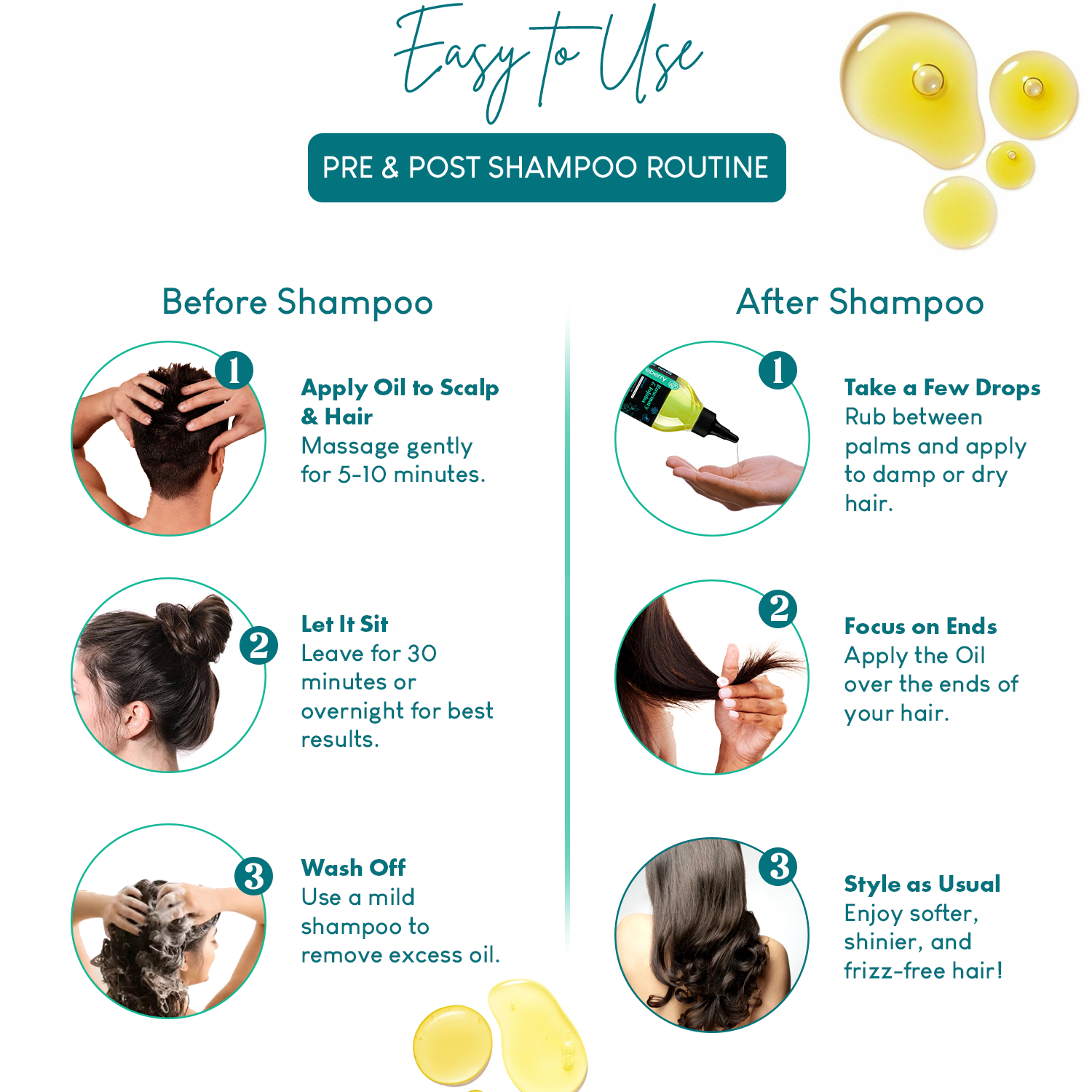 How to use: Grab this hair magic oil and gently knead with your fingertips for a solid 10. Brush or comb to share the love from root to tip. Go extra on the scalp. For even bolder results, let it chill for a few hours