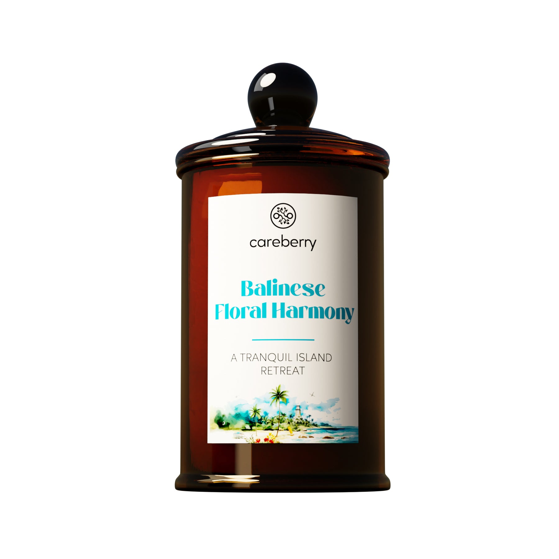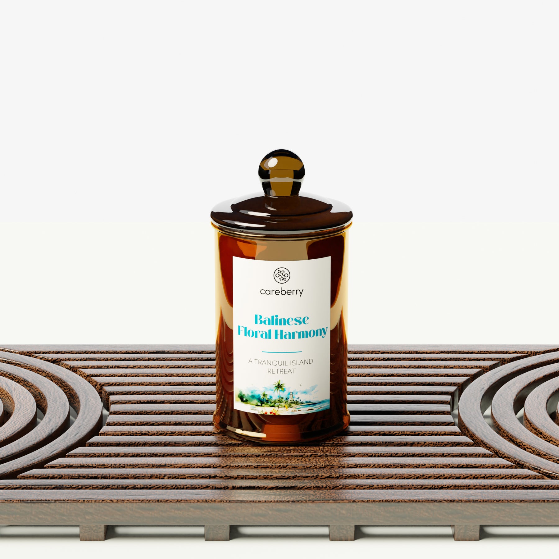 Careberry 's Balinese Floral Harmony Natural Soy Wax Candle in Amber Long Spice Glass Jar (100g) with Glass Cap