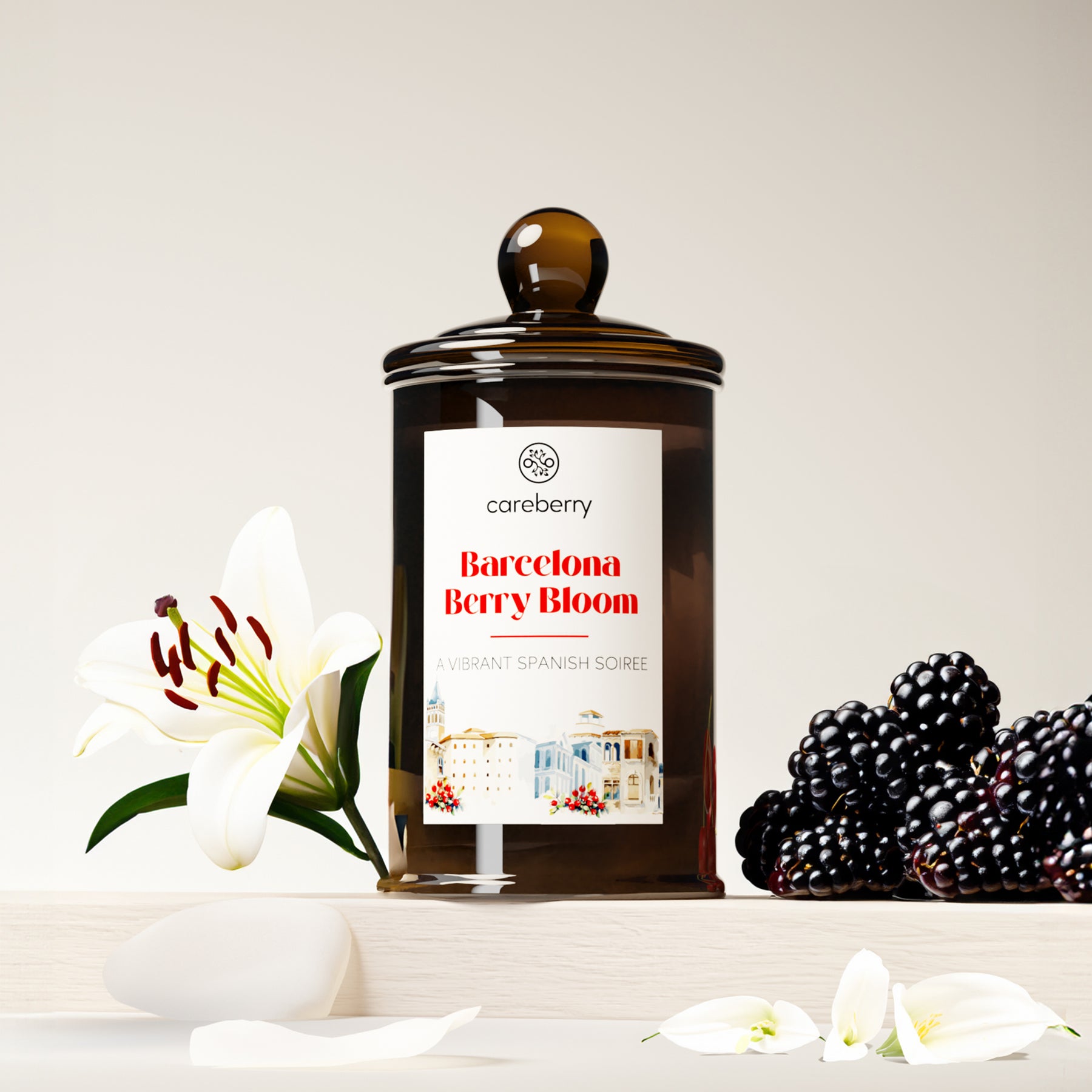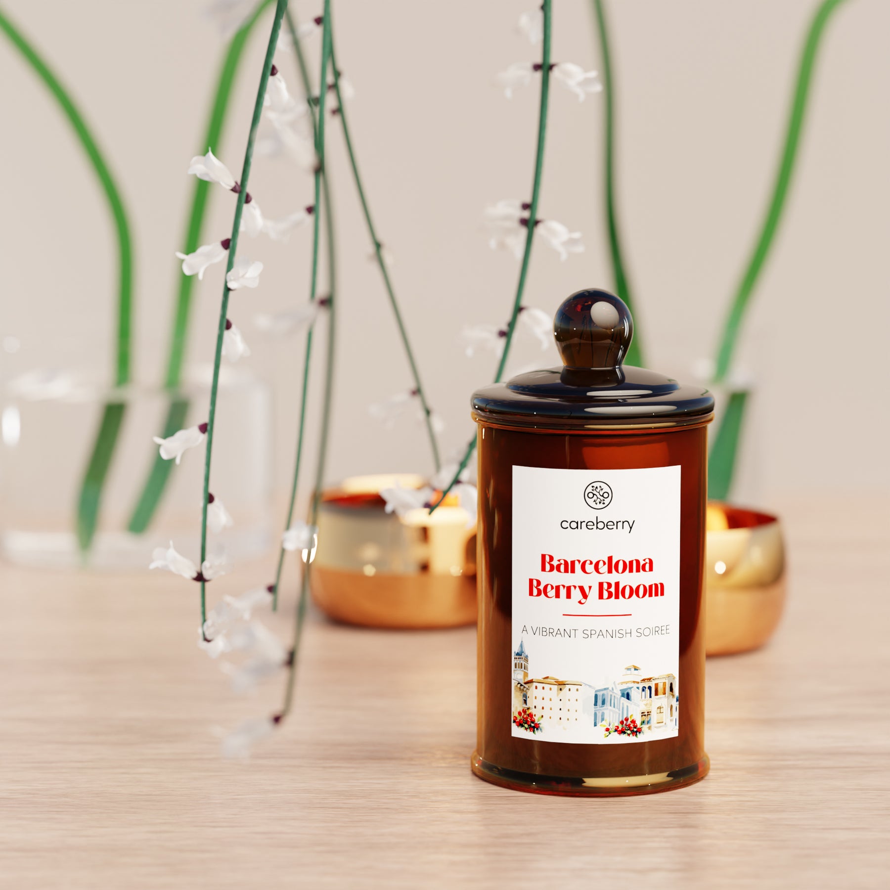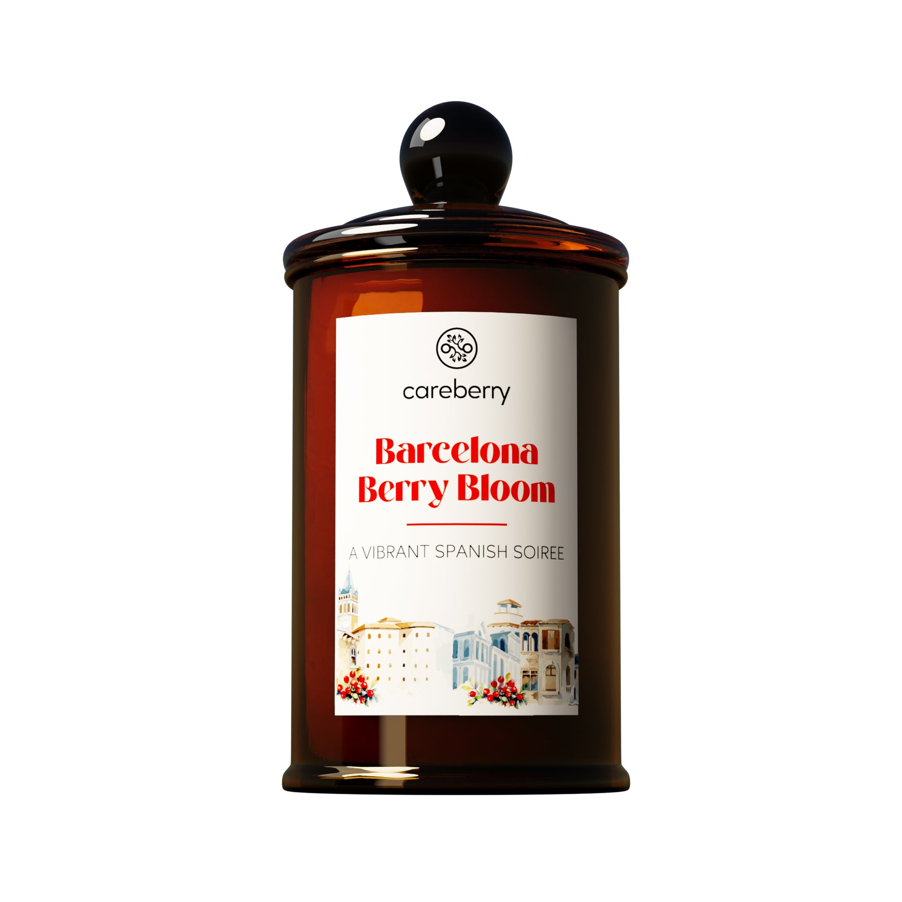 Careberry 's Barcelona Berry Bloom Candle | Natural Soy Wax | Amber Long Spice Glass Jar with Glass Cap (100g)
