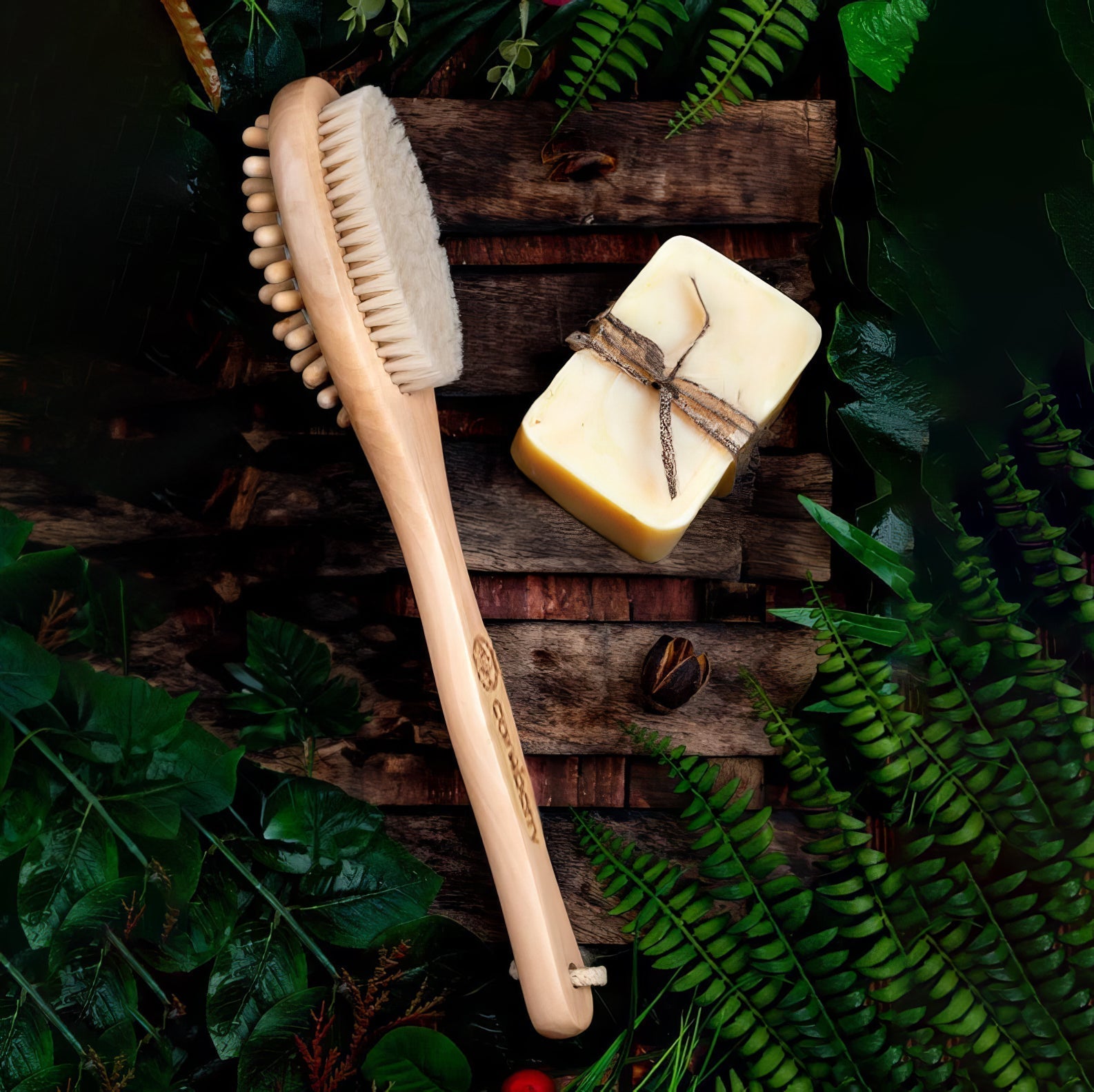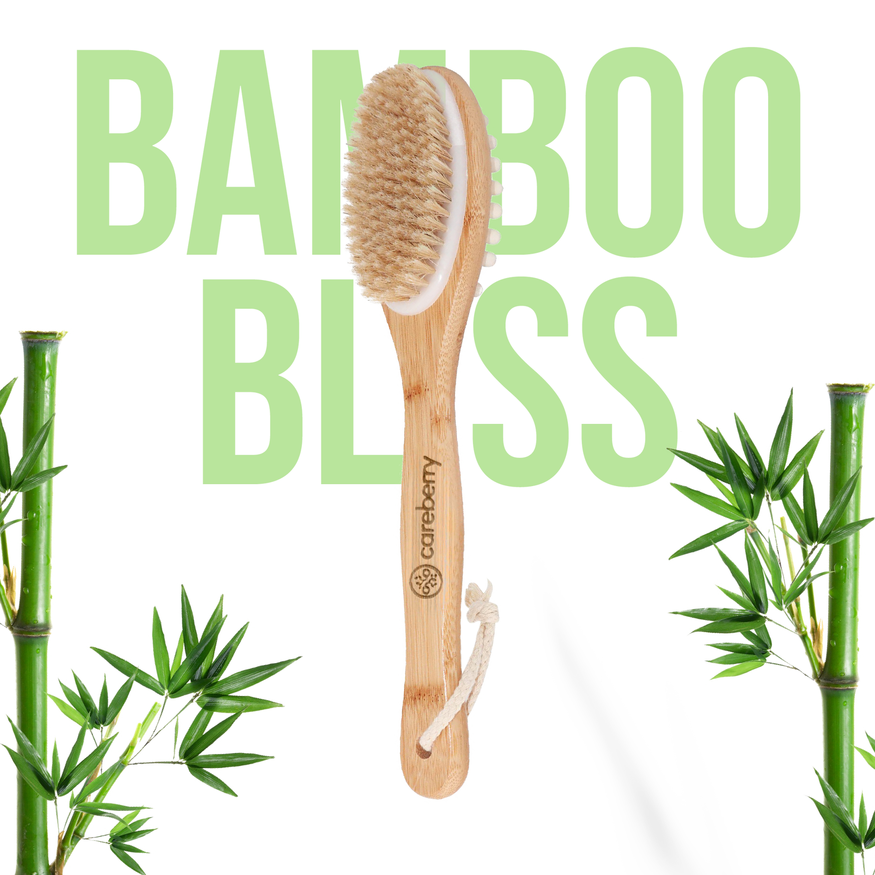 Careberry 's Dual-Action Bamboo Body Brush | Exfoliating Wet & Dry Bath Brush | Removes Dead Skin | Body Back Massager Wooden Brush