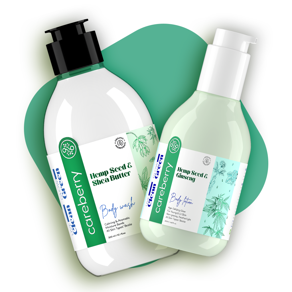 Careberry 's Hemp & Shea Butter Body Wash 300ml and Hemp Seed & Ginseng Age-Defying Body Lotion 200ml combo