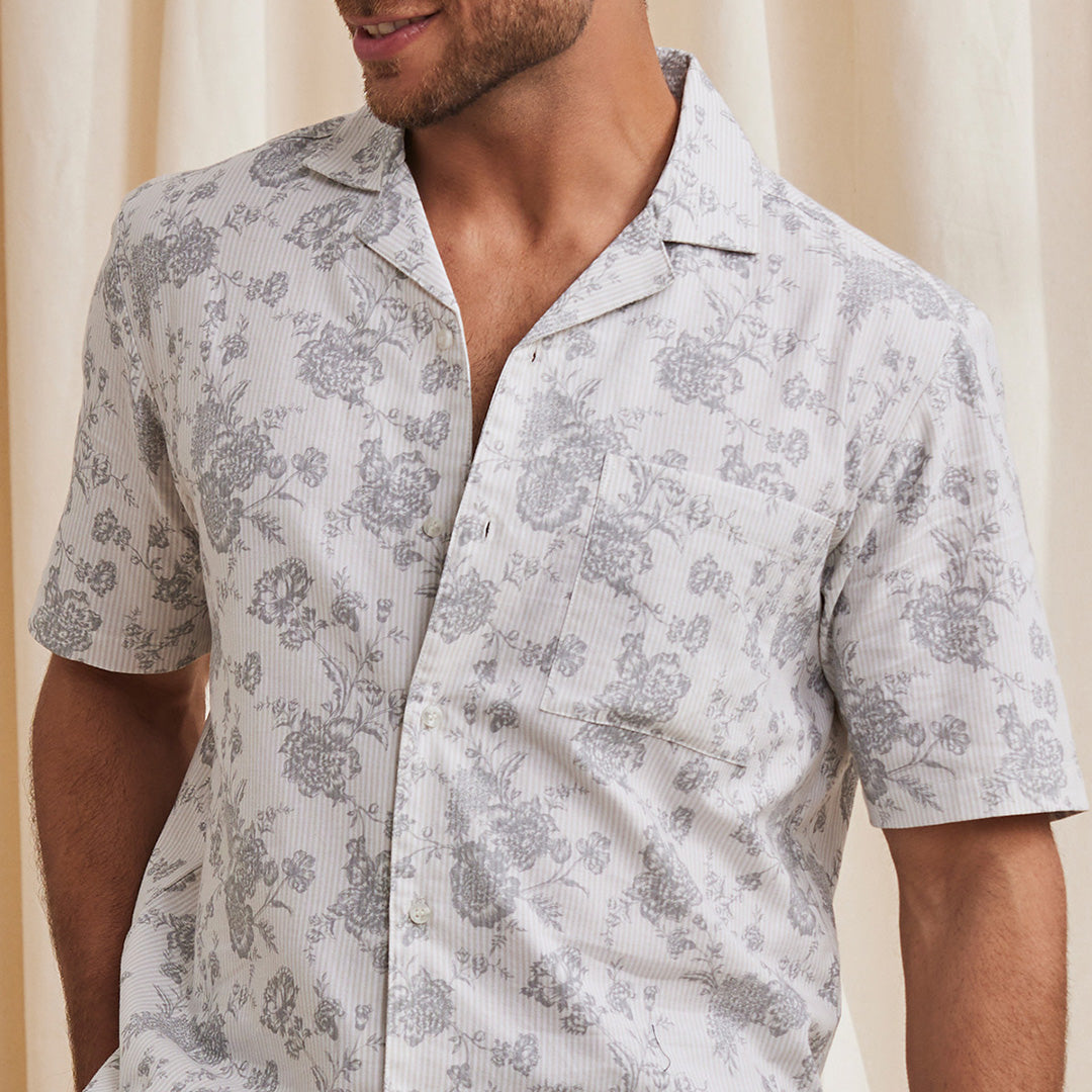 The B77 Floral Cuban Collar Shirt is designed for the modern urban man who values effortless style, travel-ready comfort, and sustainability. Its breathable fabric, subtle detailing, and eco-conscious design make it a versatile wardrobe essential for everyday wear.