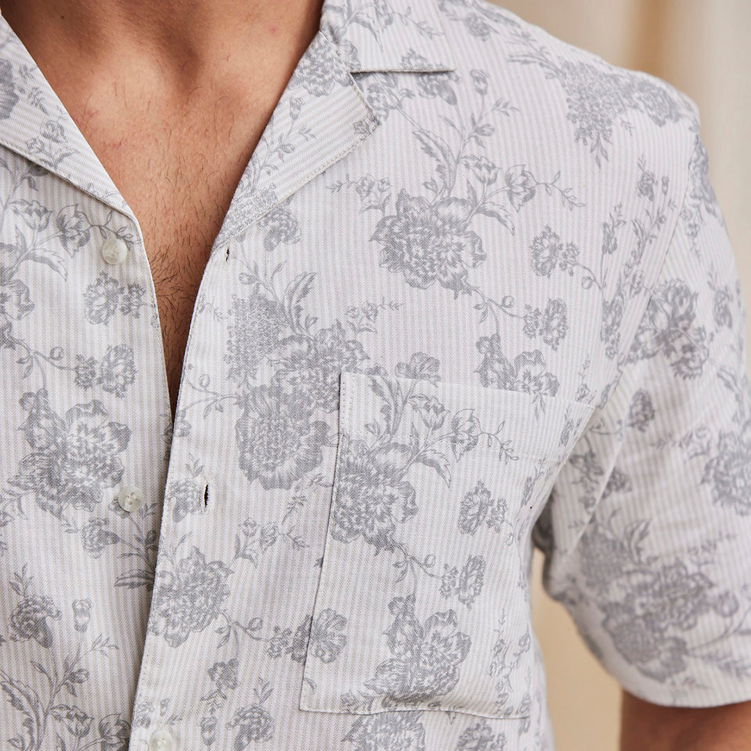 • Style: Full sleeves, Cuban collar, subtle floral print