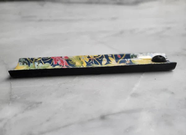 Crafted with precision and a keen eye for detail, this incense holder not only serves as a practical accessory for your home but also adds a vibrant touch of art to your decor. Made from high-quality, sustainably sourced wood, this stand is designed to hold your incense sticks securely while catching the ashes effortlessly, ensuring a clean and safe burning experience. The stand features an array of hand-painted designs in bright, cheerful colors that bring a splash of life to any room. Each piece is unique, showcasing the artisan's skill and creativity. Whether you’re seeking tranquility through meditation, enhancing your yoga practice, or simply refreshing your living space with soothing scents, our Colorful Agarbatti Wooden Stand is the perfect companion.