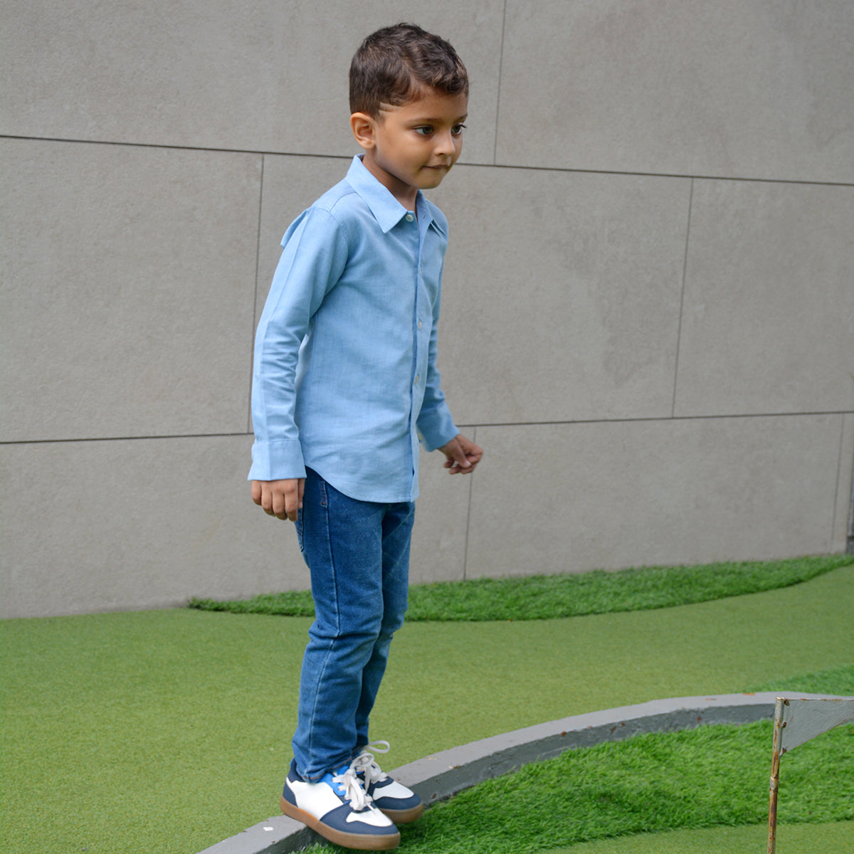 This kids' denim shirt is the perfect blend of cool and comfy! Crafted from soft, durable denim, it features a classic button-down style for a timeless look. Whether dressed up or down, this versatile shirt is great for everyday wear or special outings. Itäó»s the ultimate go-to for kids who love a laid-back, effortlessly stylish vibe!
