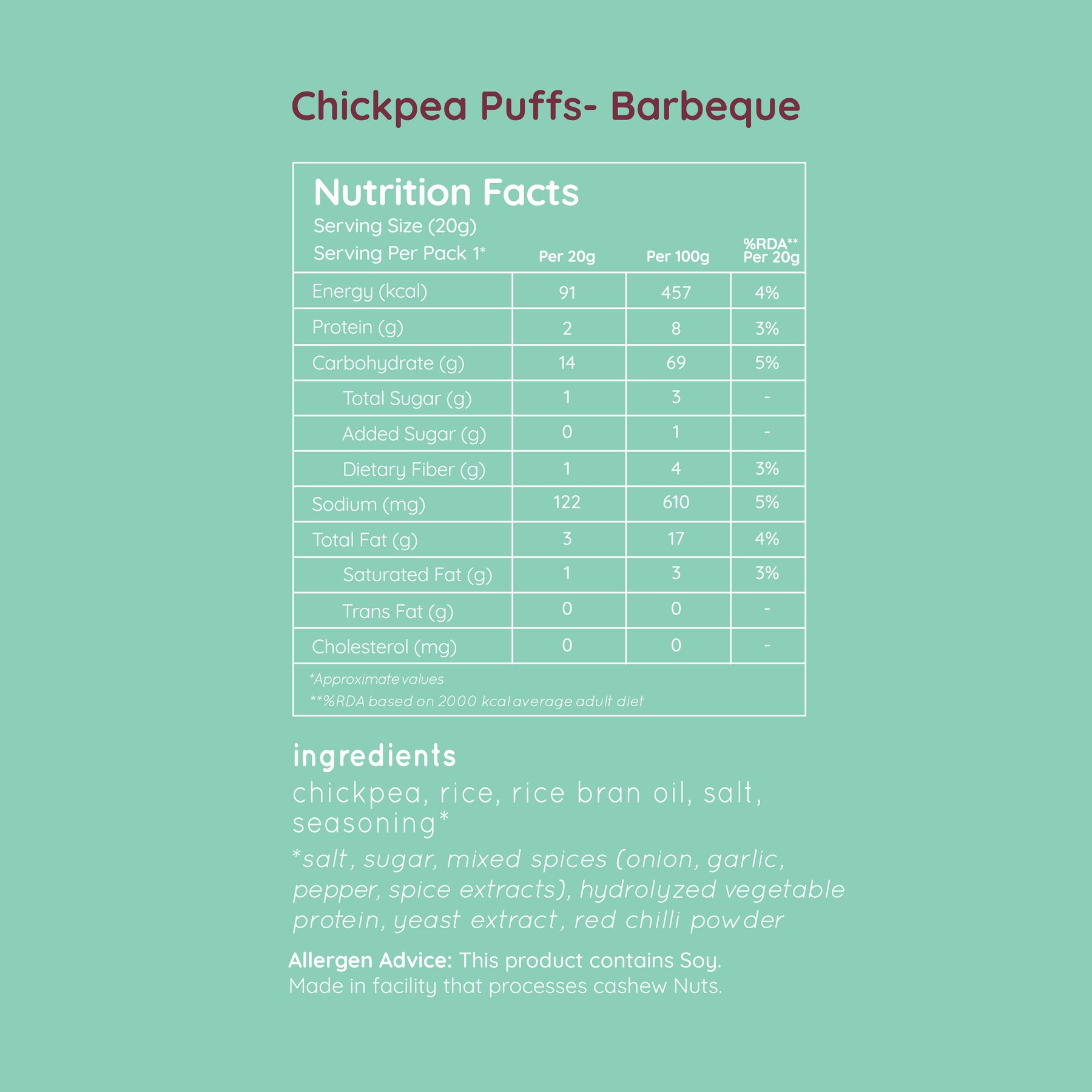 Light and crunchy puffs made from wholesome chickpea. These high protein puffs are rich in flavour and crispy to the core. Low in calorie and high in flavour, this backyard barbecue is finger-lickin good. (Bundle Pack of 12).