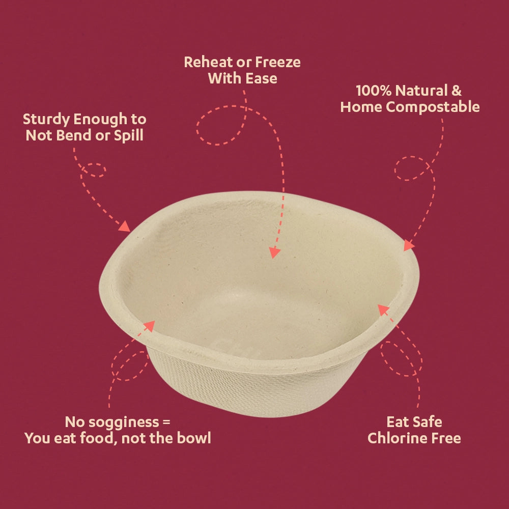 • 100% Food-grade, non-toxic, and chlorine free sugarcane bowl.