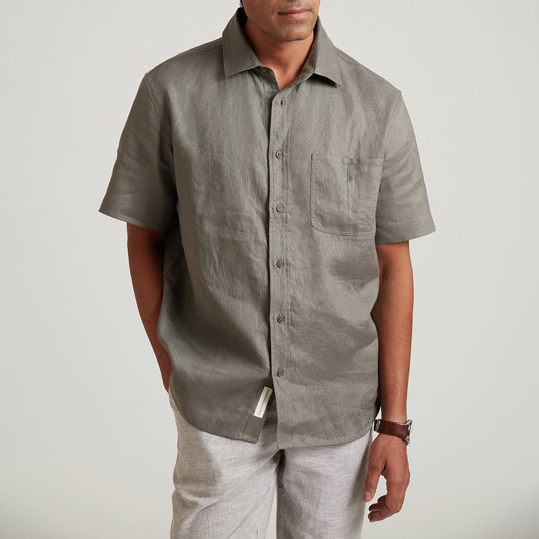 The B77 Gray Soil Organic Linen Half-Sleeve Shirt is an essential for the modern man seeking comfort, style, and versatility. Lightweight and breathable, it is perfect for casual outings, work-from-home days, or travel, while remaining aligned with eco-conscious fashion values.