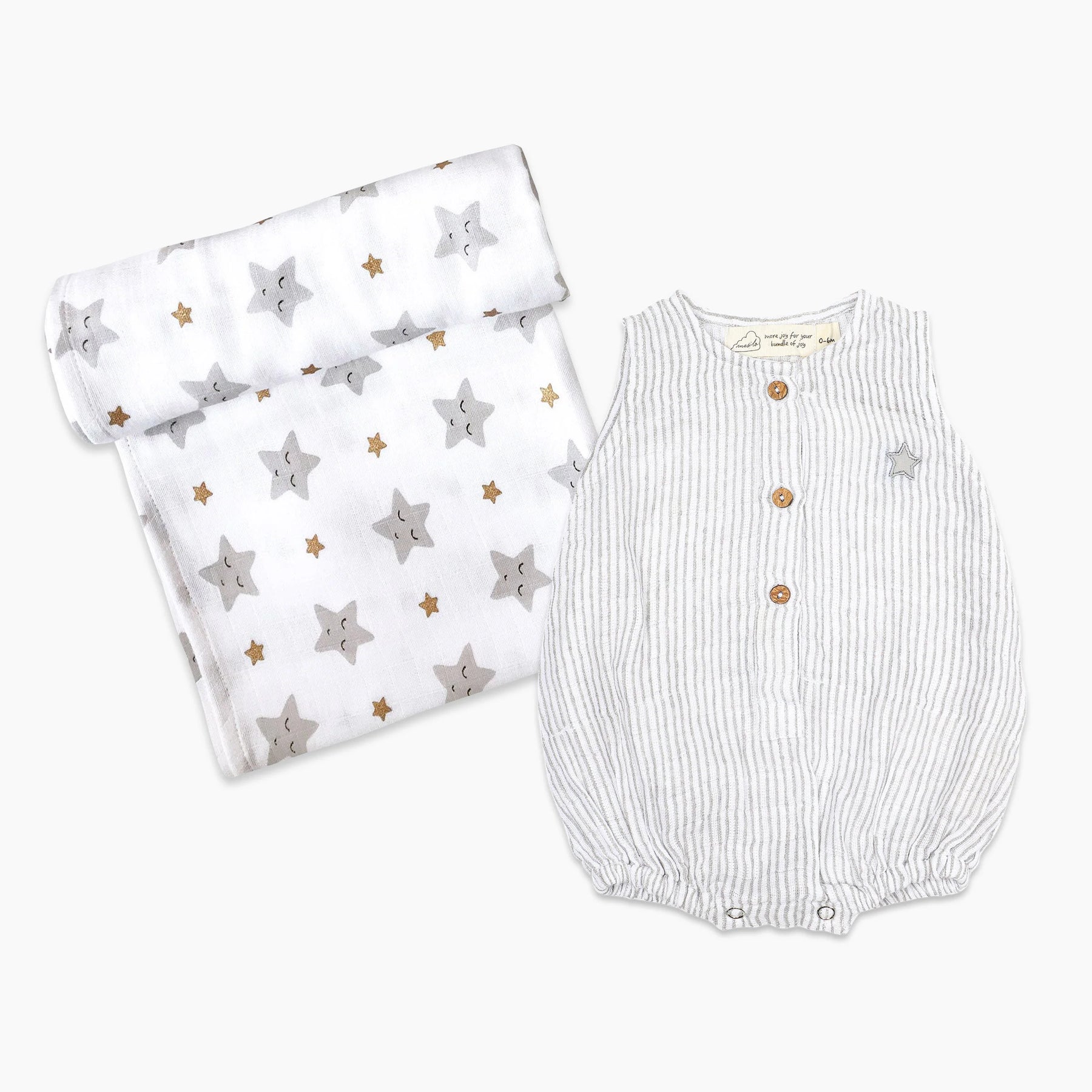 It's a classic for a reason. One of our organic swaddle blankets gets perfectly paired with a cutest-of-cute, baby romper.