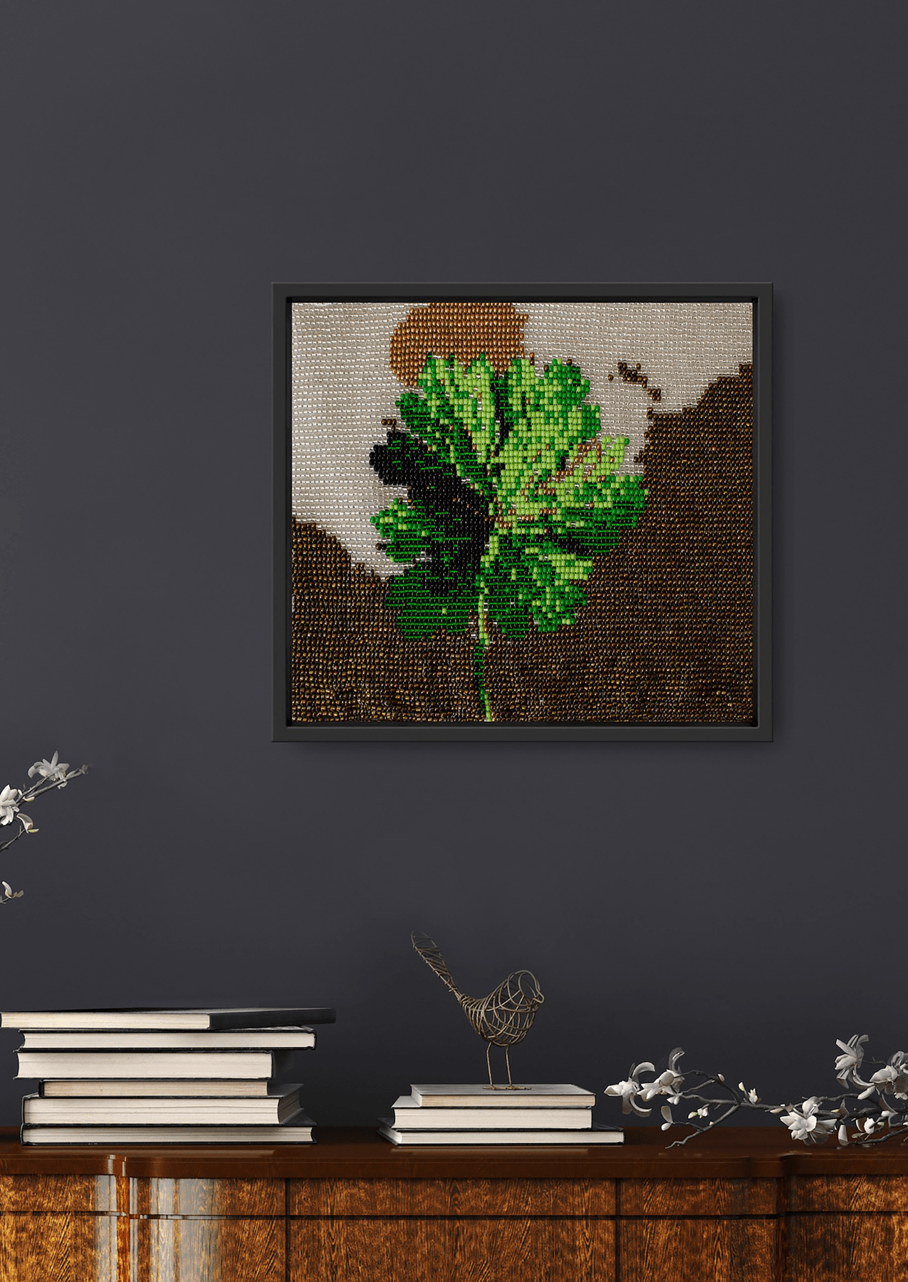 About the Collection: Handwoven on simple wooden looms by artisans in Bhavnagar, Gujarat, this piece embodies India’s fading bead-loom tradition. Tiny glass beads are woven into intricate patterns inspired by nature and geometry, preserving a craft once used to create torans that symbolized welcome and good fortune. Each artwork tells a quiet story — a meditative play of texture, light, and patience.