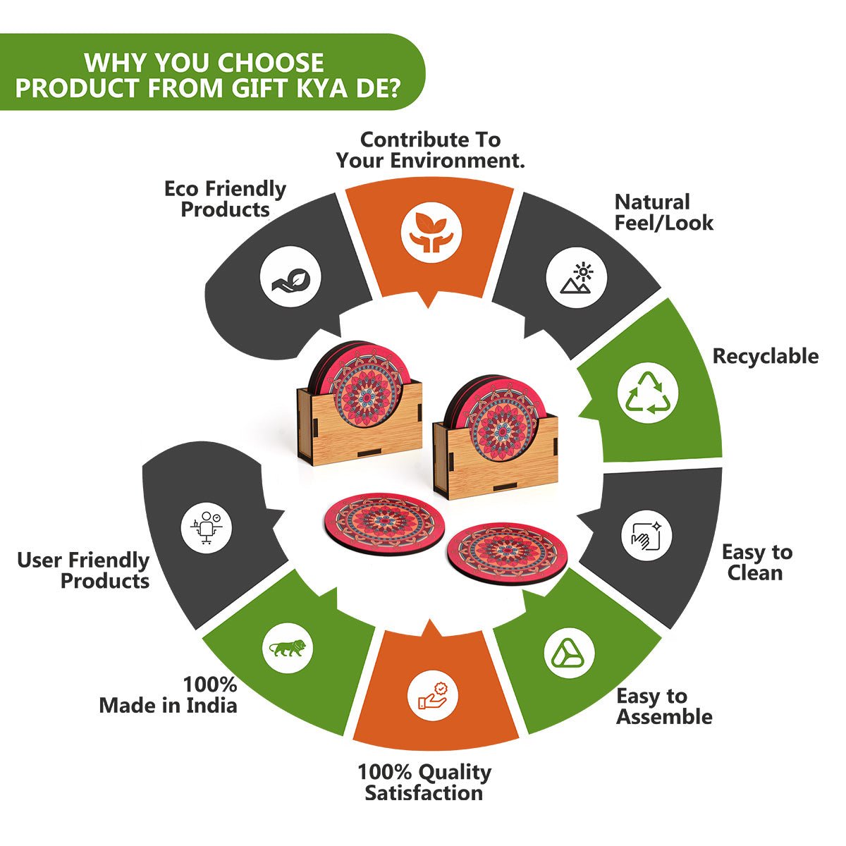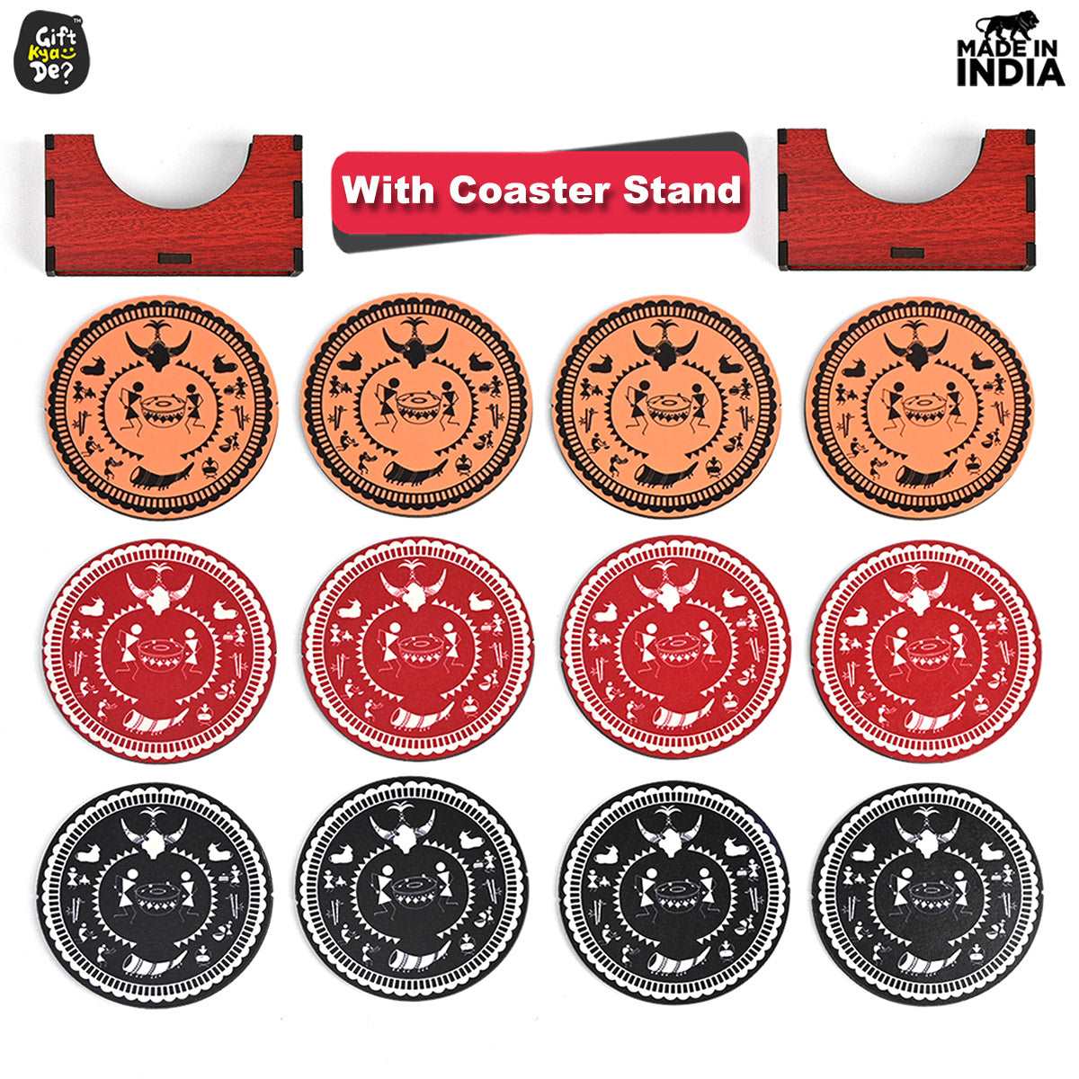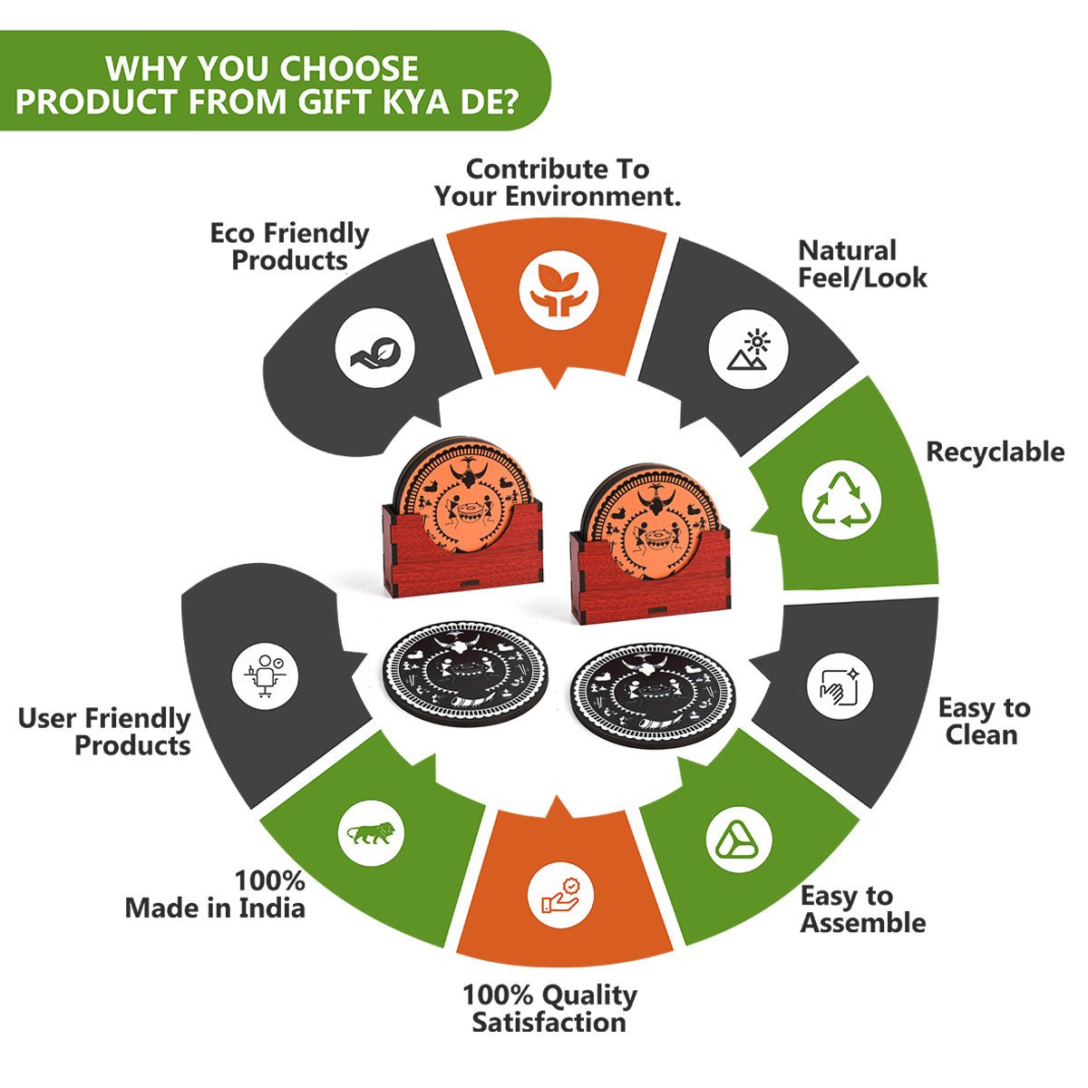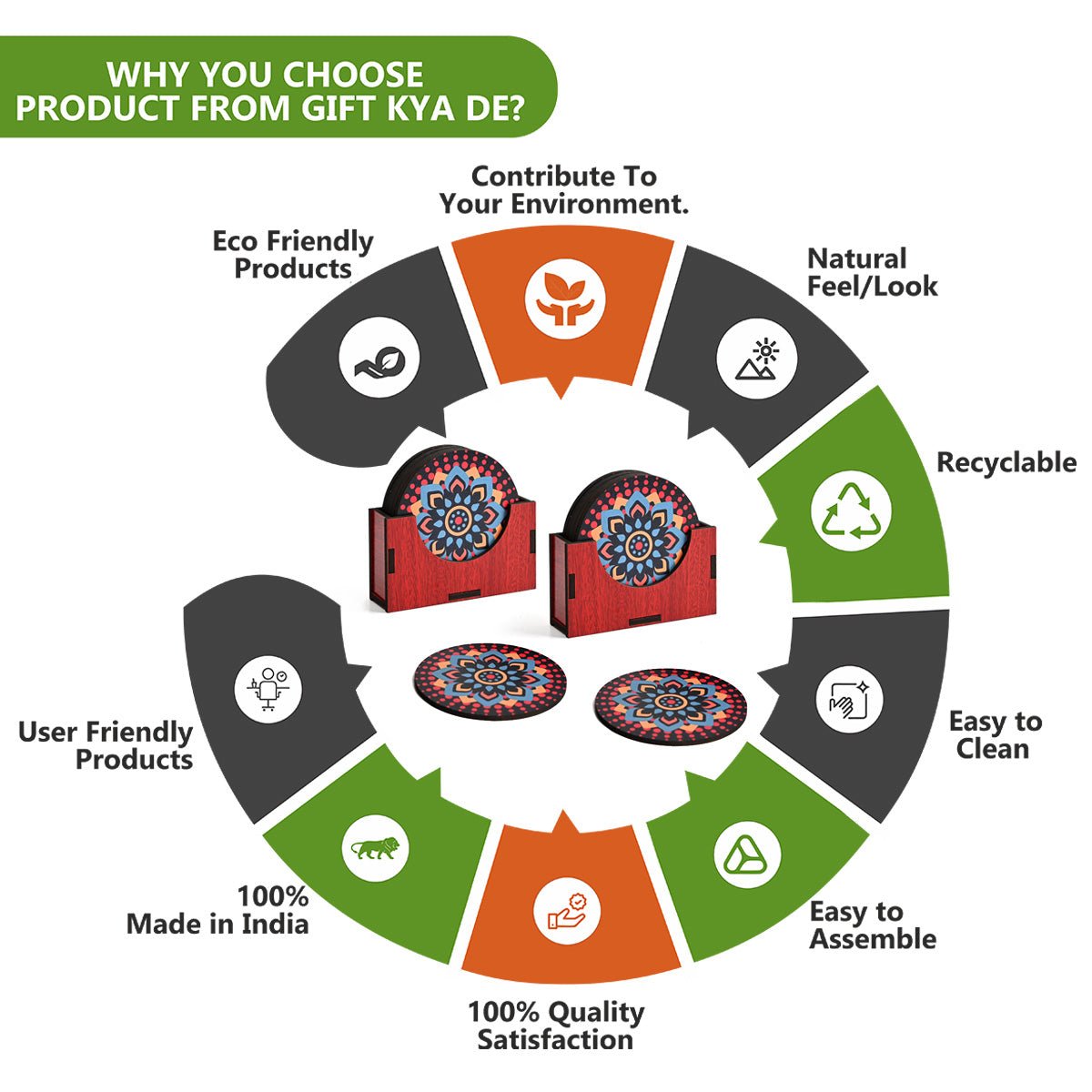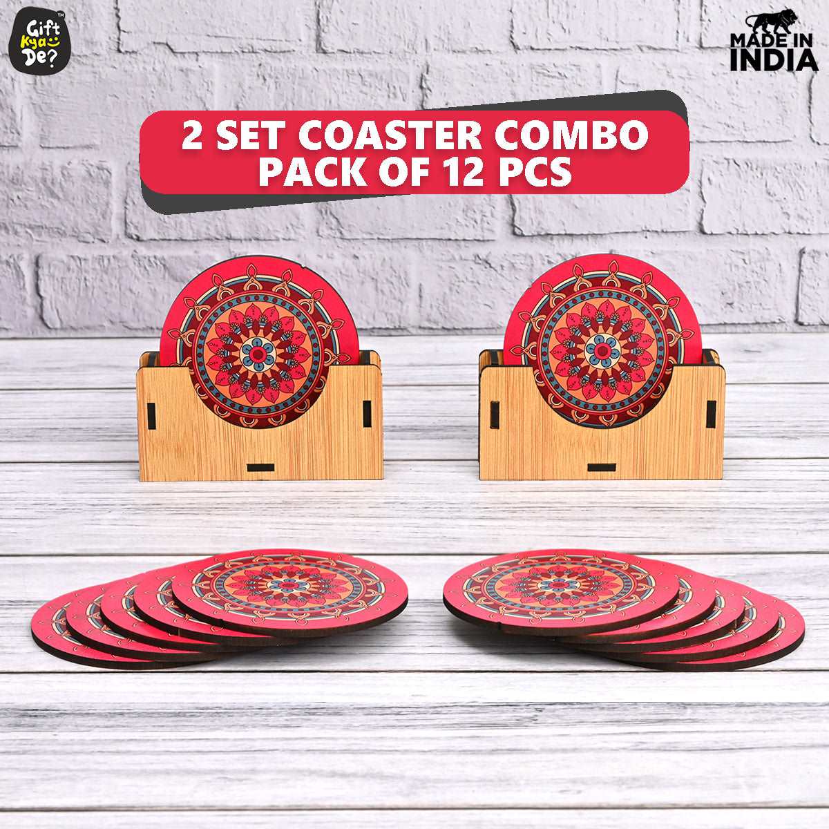 Gift Kya De Coaster Set of 12 Beautiful Wooden Coasters with Proper Coaster Stand (Combo Pack) (12 pc 9 x 9 cm)