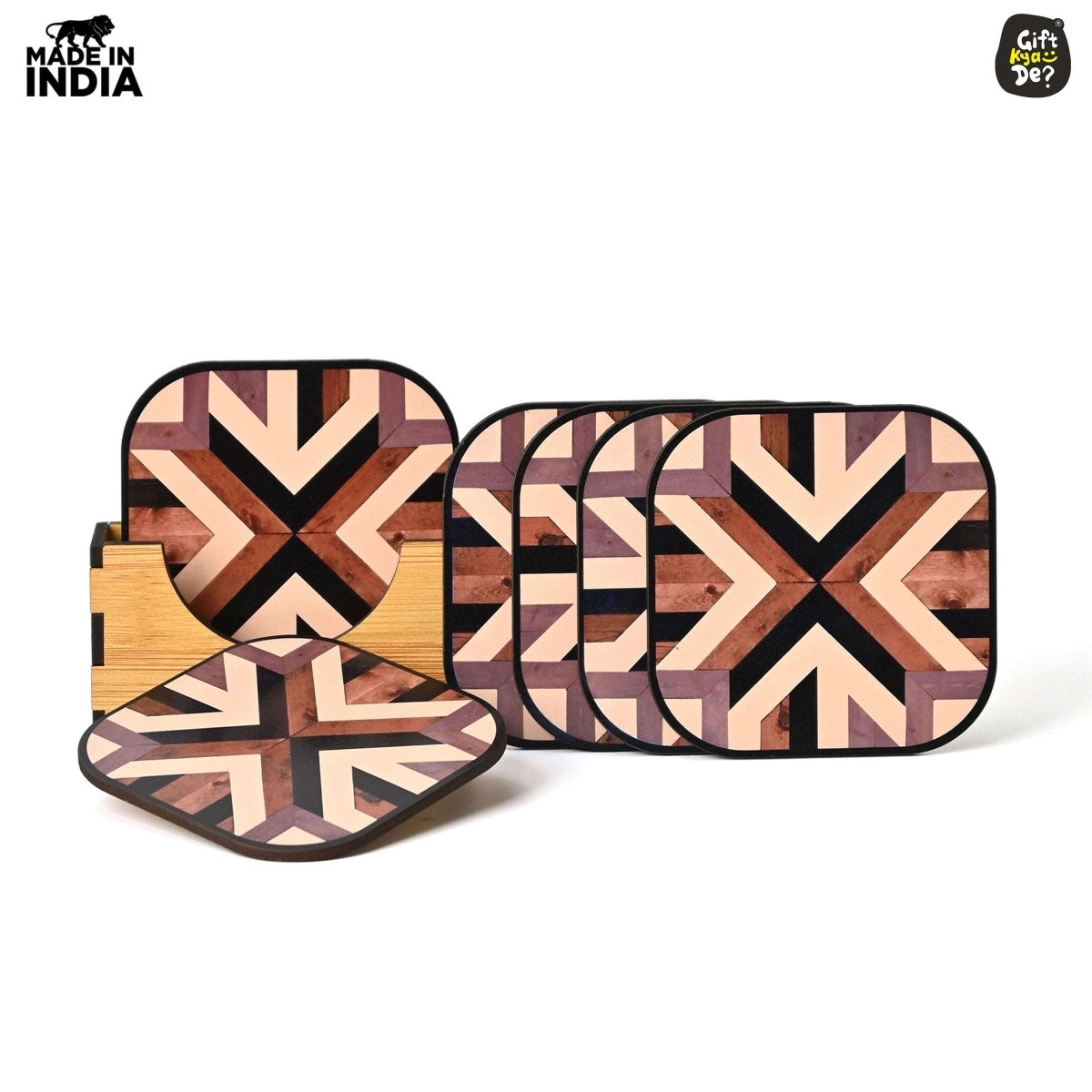 Gift Kya De Coaster Set of 6 Chevron Design | Wooden Coasters With Coaster Stand | Kitchen Accessories (Ecofriendly)