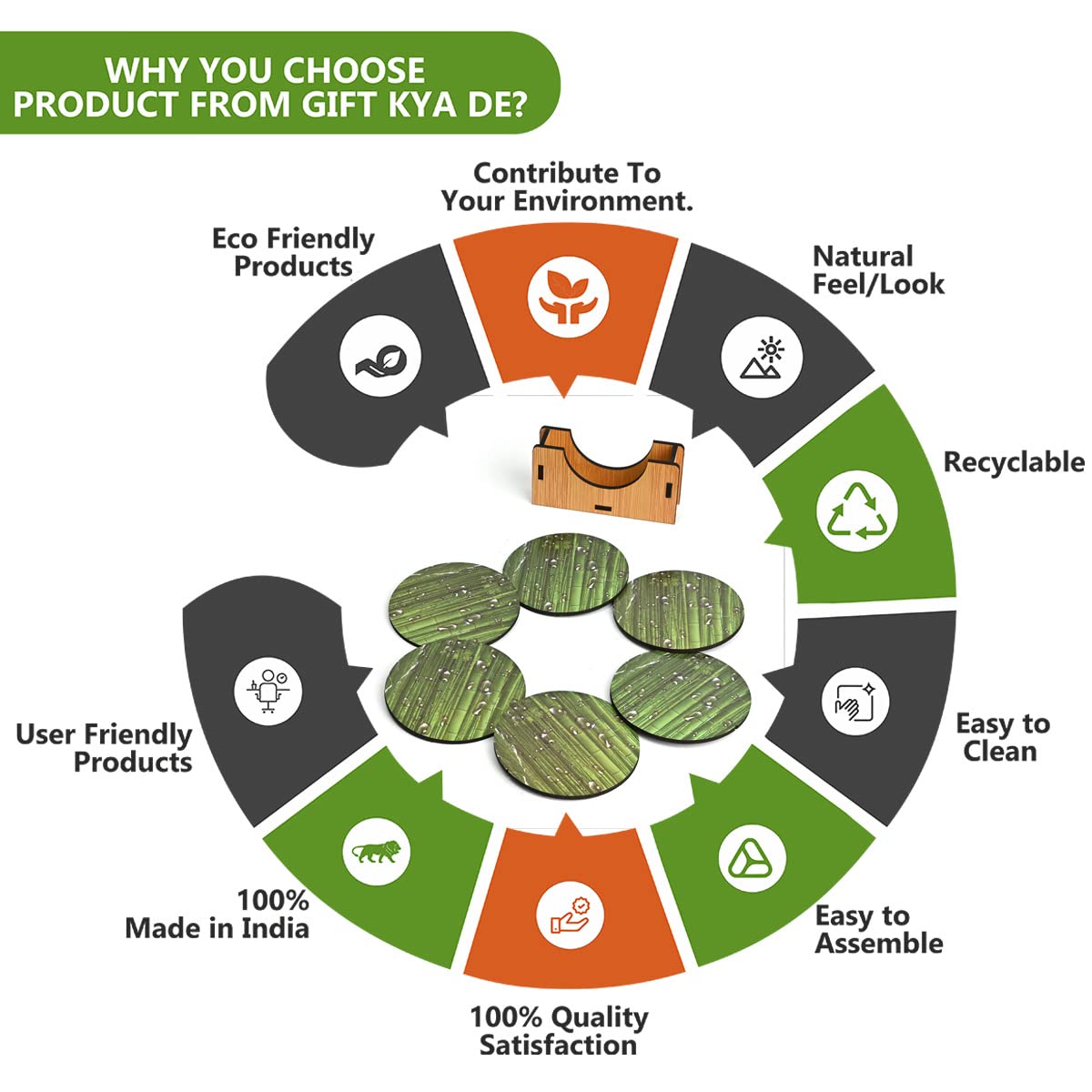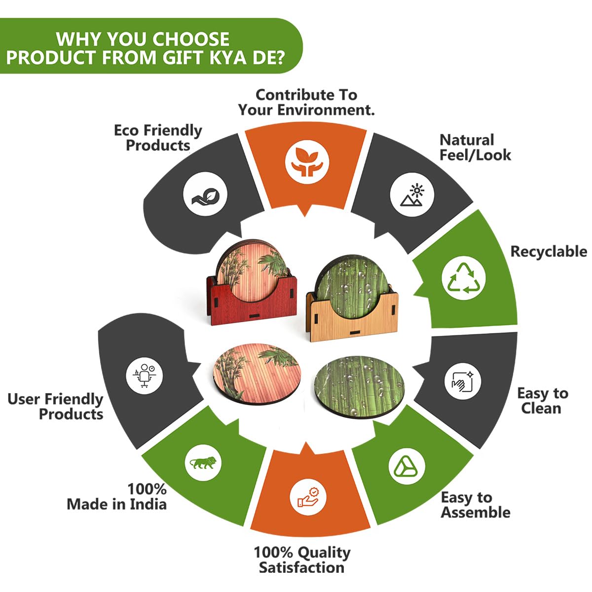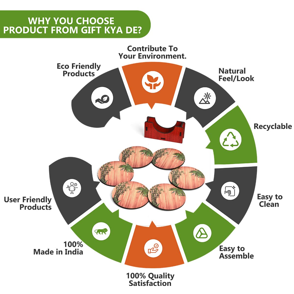 Gift Kya De Coaster Set of 6 Natural Wooden Bamboo Tree Style | Coasters with Beautiful Coaster Stand