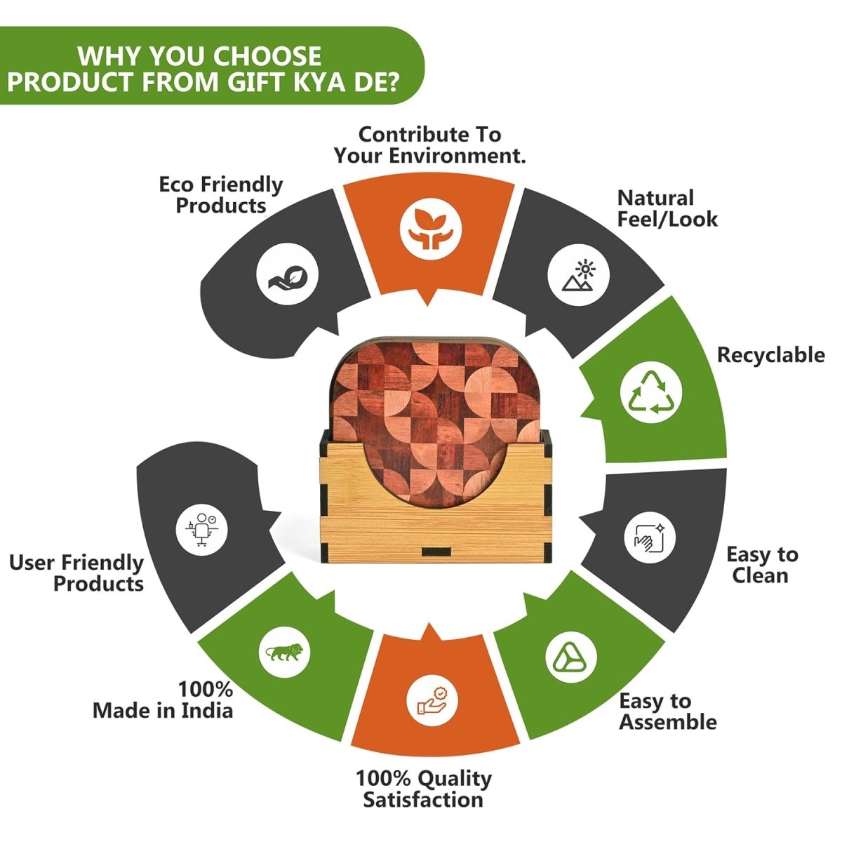 Build Quality: Coaster stand Is A Very Strong And Sturdy Build Quality Made Up Of 3.2 Mm Polished MDF Engineering Wood To Last Longer And Light In Weight, Made With A Quality Product, And Very Easy To Clean. Strong Quality, Not Easy To Break.