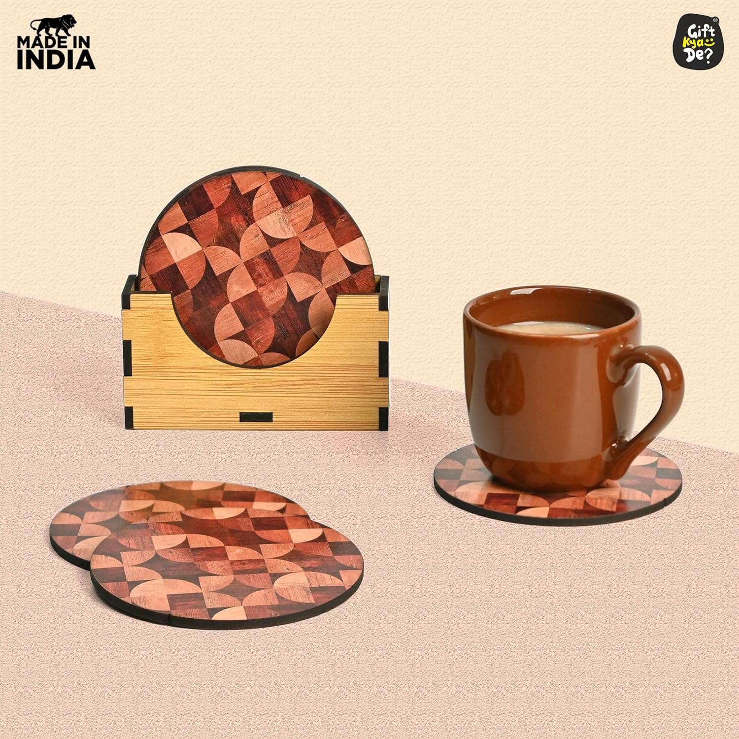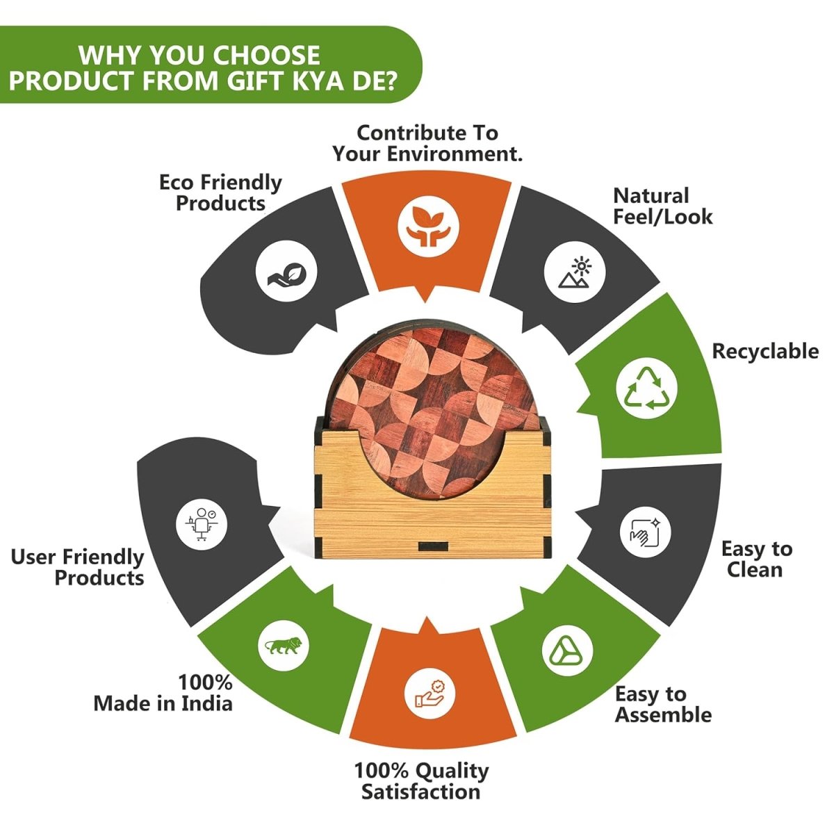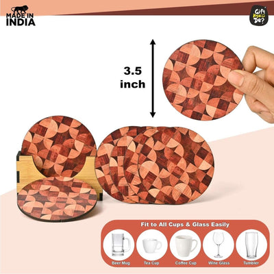 Gift Kya De Coaster Set of 6 Woody Design | Wooden Coasters With Coaster Stand | Kitchen Accessories (Ecofriendly)