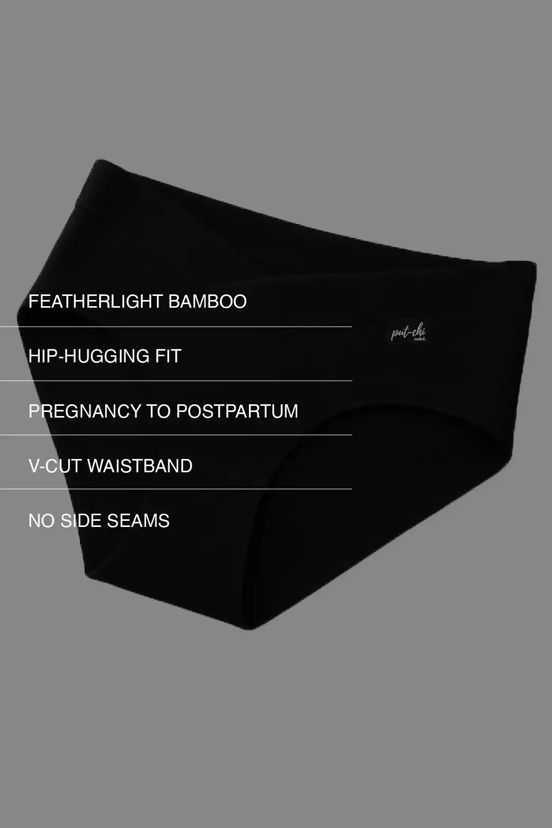 •  Designed for the softest kind of support, the Putchi V-Cross Hipster Panty features a signature V-shaped crossover waistband that sits gently under the bump — and stays out of your way. Made from our naturally breathable bamboo blend, it’s cool, stretchy, and whisper-soft against sensitive skin.