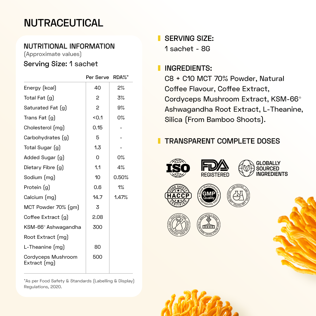 Crafted with 500mg of endurance-boosting cordyceps mushroom extract, this Shroom Coffee acts as your personal energy booster, taking you from lethargic to energetic almost instantly.