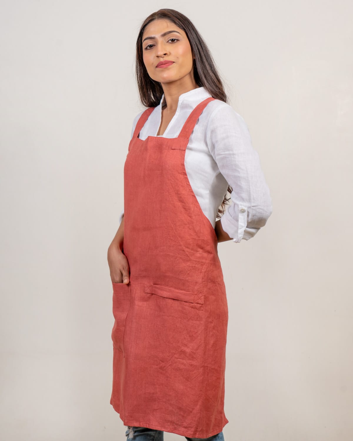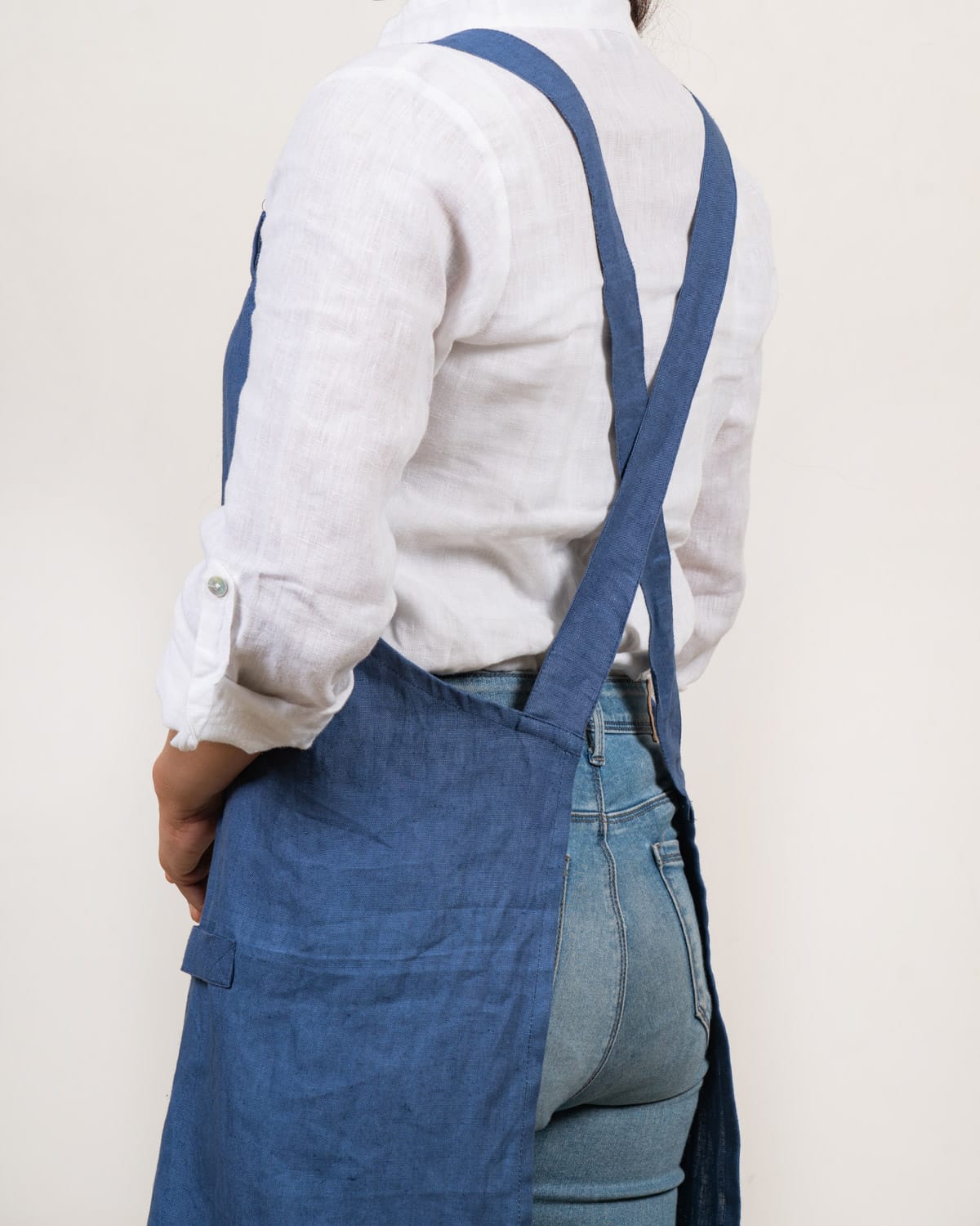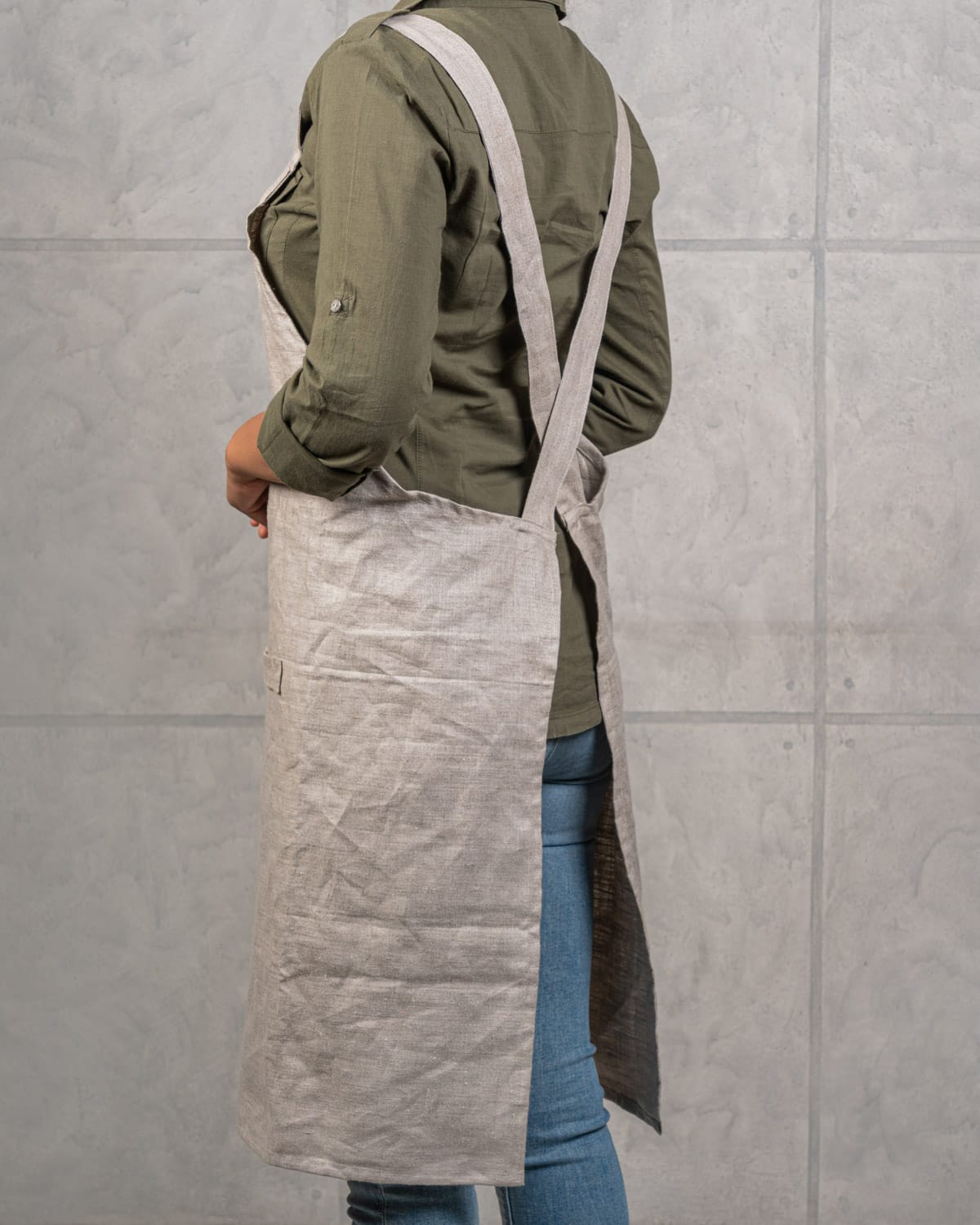 Without any strings or neck ties, our cross back aprons  in 100 % sustainable and extremely durable hemp fabric can be worn effortlessly for long hours. Also suitable for retail store staff as well as for people in the food industry.