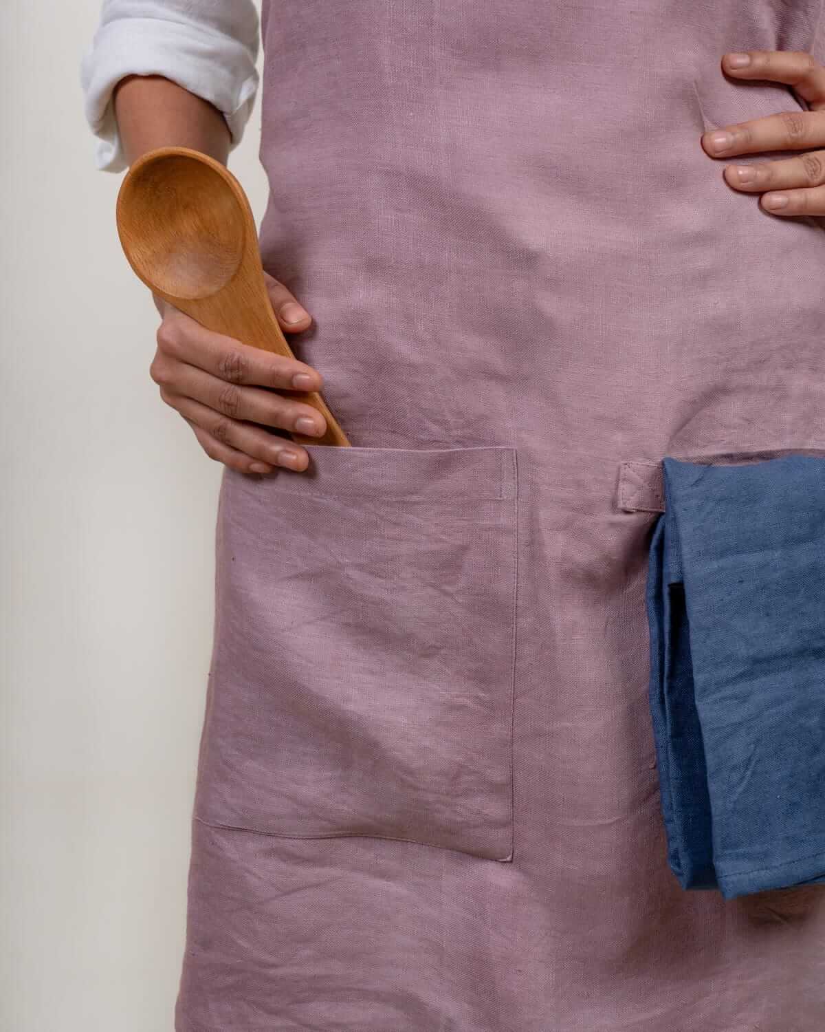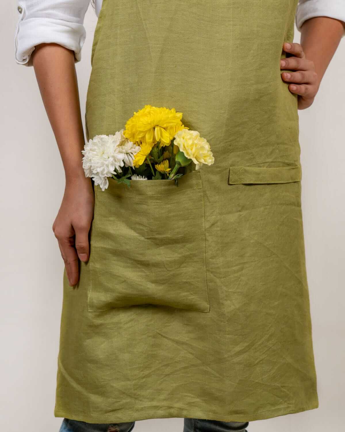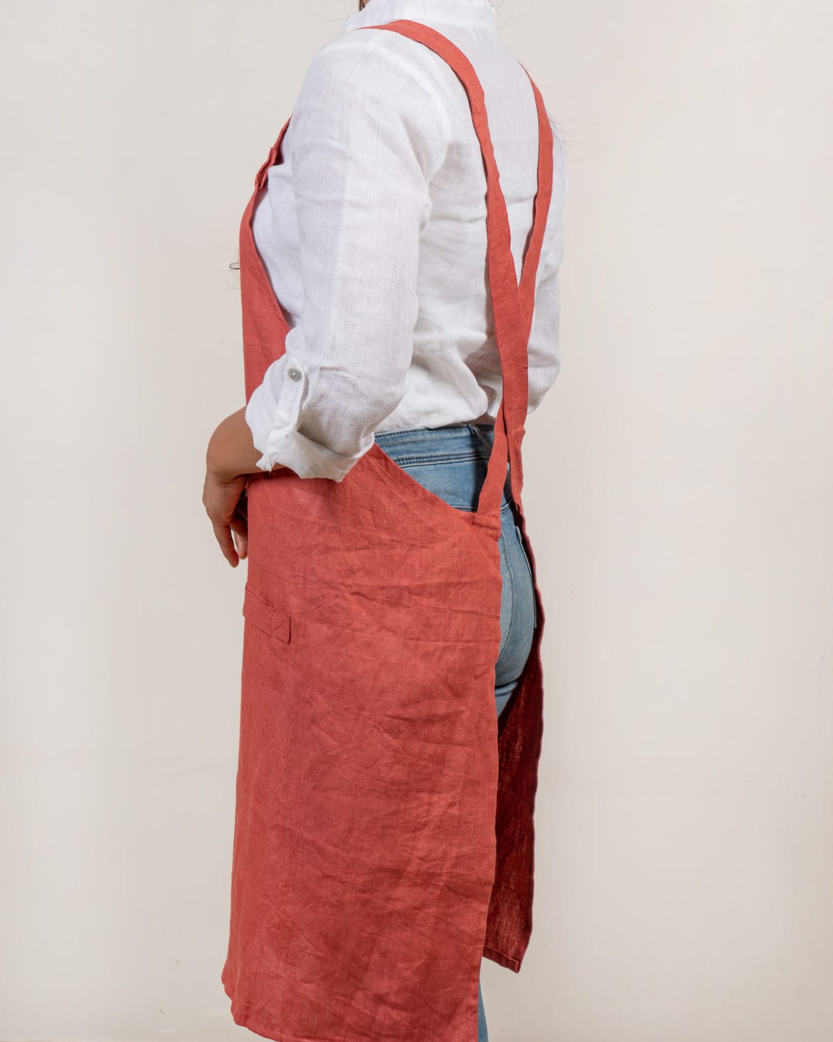 Without any strings or neck ties, our cross back aprons  in 100 % sustainable and extremely durable hemp fabric can be worn effortlessly for long hours. Also suitable for retail store staff as well as for people in the food industry.
