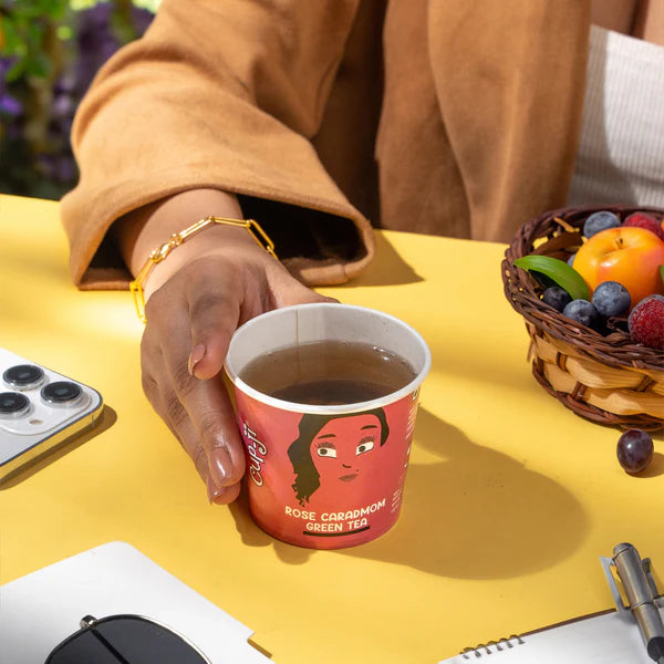 CupJi Rose Cardamom Green Tea | Pack of 10 Cups