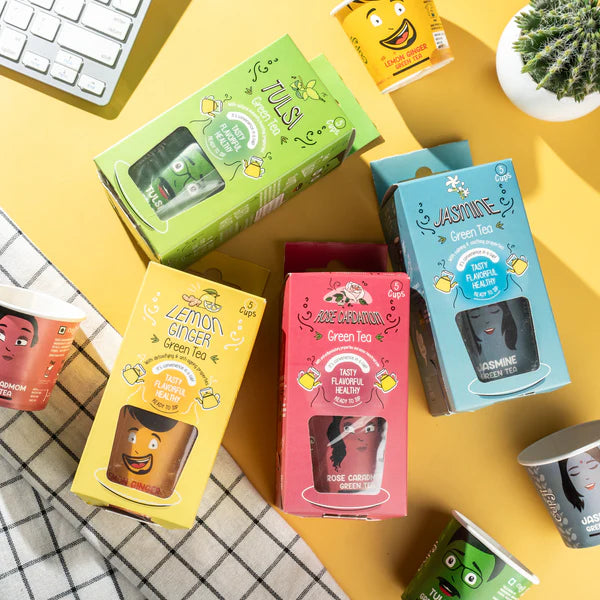 Can’t decide which Cup-Ji flavour to try first? We've got you covered with our Trail Pack of 20 Ready-to-Sip Tea Cups– a discovery set featuring 5 cups each of 8 iconic blends. From the streets of India to timeless wellness staples, this sampler is your passport to flavour!