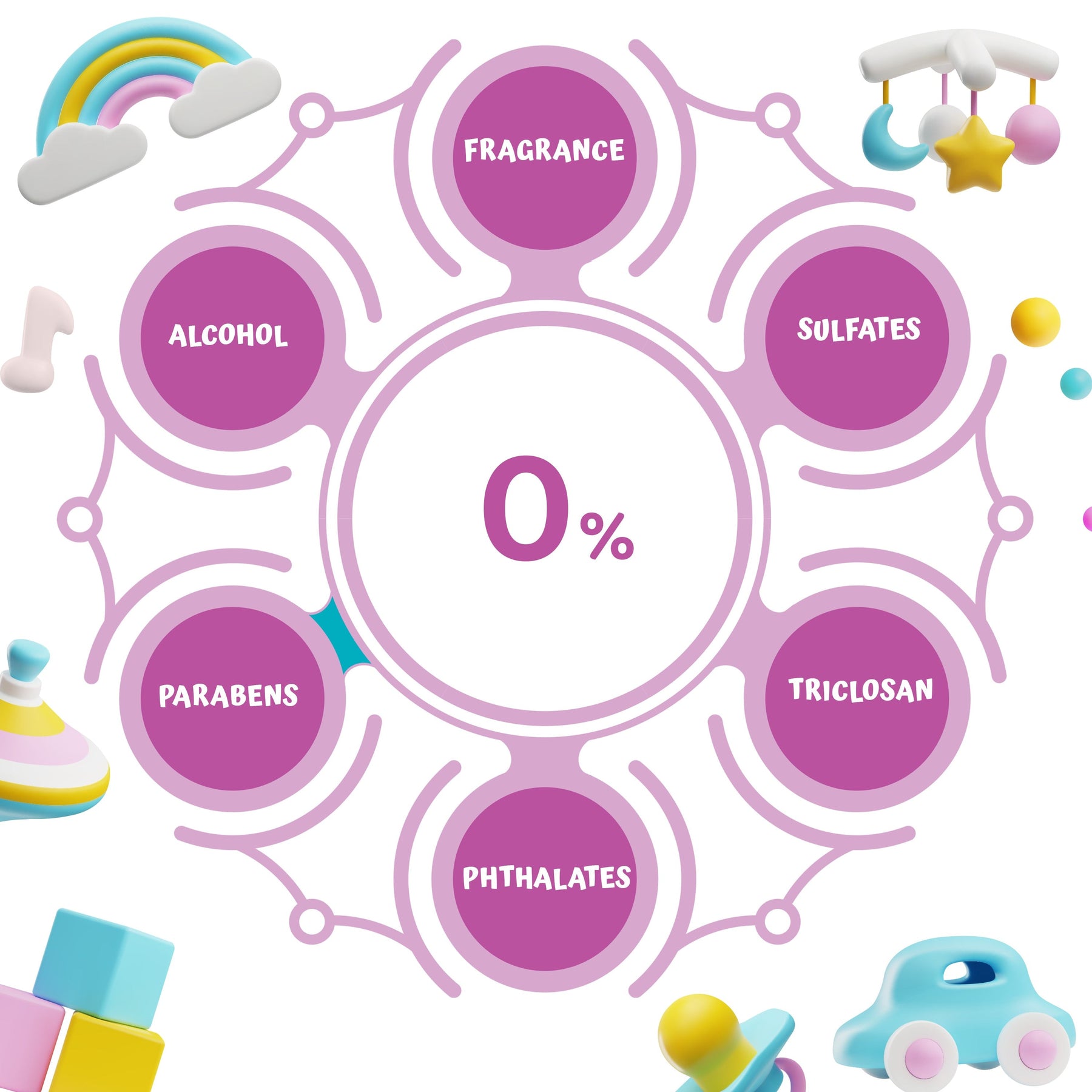 7. pH 5.5: Specifically formulated to match your baby’s natural skin pH of 5.5 which helps to protect its natural barrier, preventing dryness and irritation. This balanced pH supports healthy skin and prevents harmful bacteria, keeping your baby’s skin safe and comfortable.