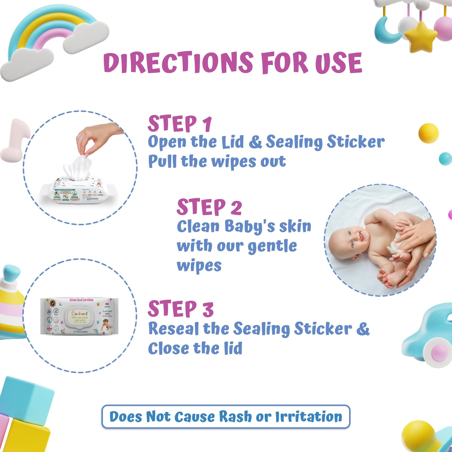 Complete plant based unique Innovative formulation (Patented) to suit even for baby’s delicate skin. Unlike many other baby wipes on the market, which contain harmful chemicals such as Phenoxyethanol, Propylene Glycol, Butylene Glycol, Ethylene Glycol, Polysorbates, PEG Derivatives, Methyl Isothiazolinone (MI) [Alcohols, Phthalates, Triclosan, Petrochemicals, Parabens, Sulfates and Formaldehyde etc.,], we at CutetotZ prioritize your baby’s well-being and the planet’s health and our baby wipes are completely free from these toxic substances.