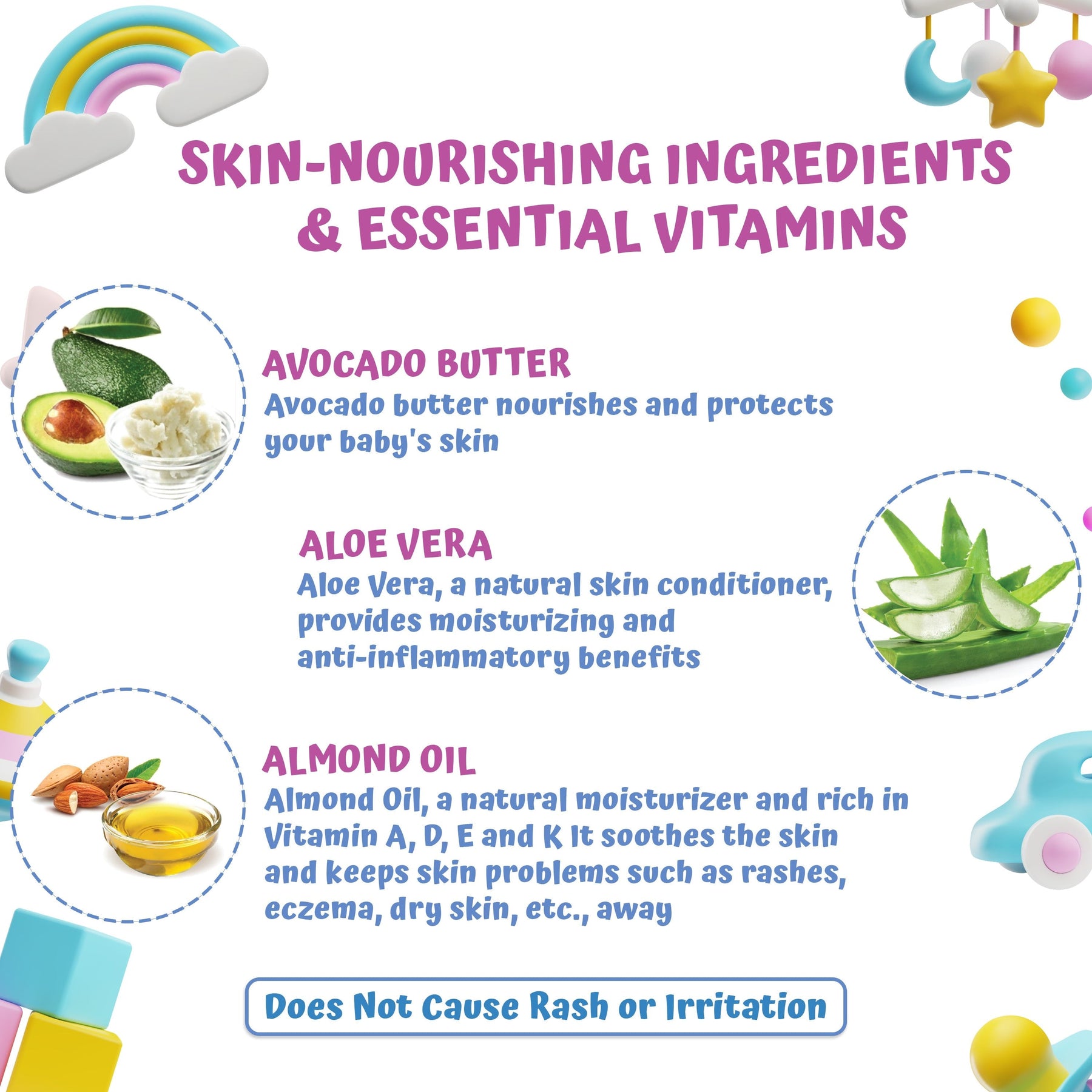 5. Dermatologist approved, Proven Hypoallergenic & Non-Irritant: Backed by case studies, reviewed, and approved by professionals, the formulation is proven safe and gentle for daily use, even on babies' delicate skin. Specially designed to minimize allergic reactions and skin irritation, perfect for babies’ sensitive skin.