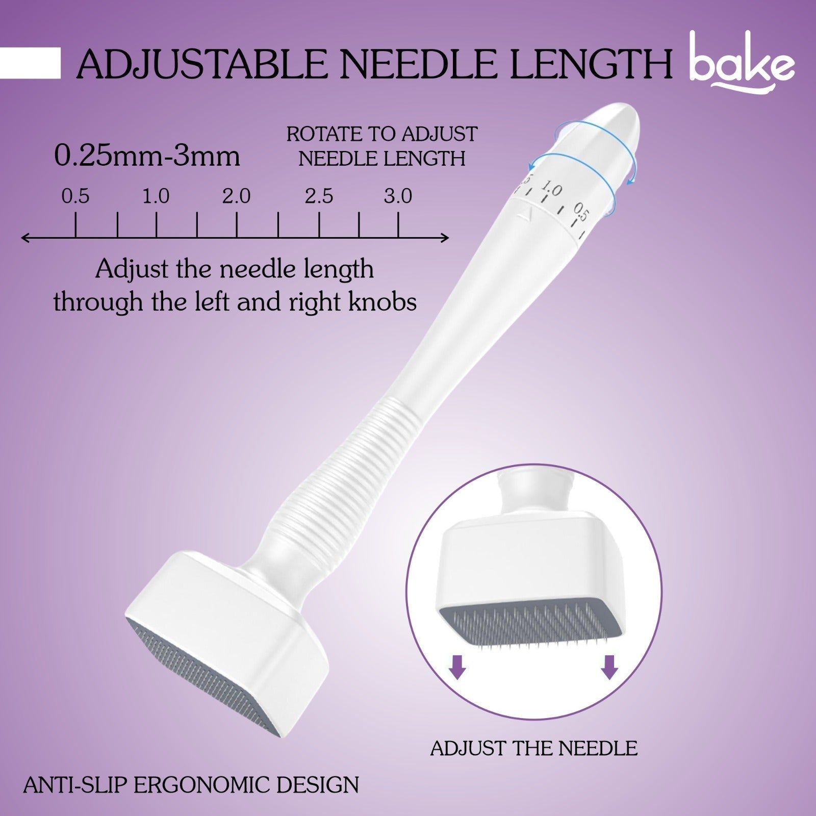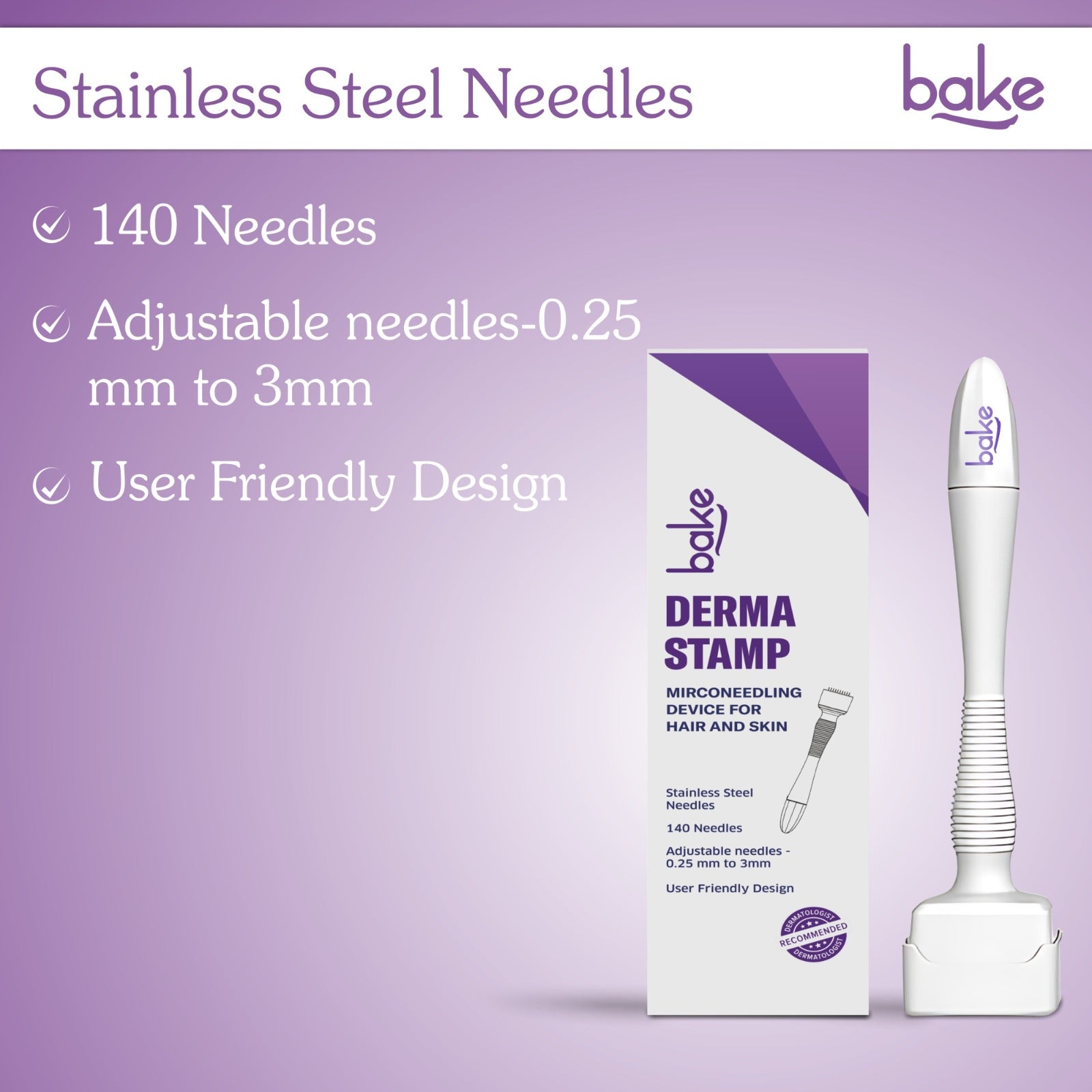 BAKE Derma Stamp is a versatile micro needling tool designed to promote hair and beard growth, as well as improve skin texture. Featuring 140 stainless steel needles, it offers adjustable lengths from 0.25mm to 3mm, allowing you to customize your treatment based on your needs. Ideal for targeting acne scars, stimulating hair follicles, and enhancing skin repair, this stamp is suitable for both men and women. Whether you're aiming to rejuvenate your skin or boost hair density, the BAKE Derma Stamp provides an effective, easy-to-use solution for at-home care.