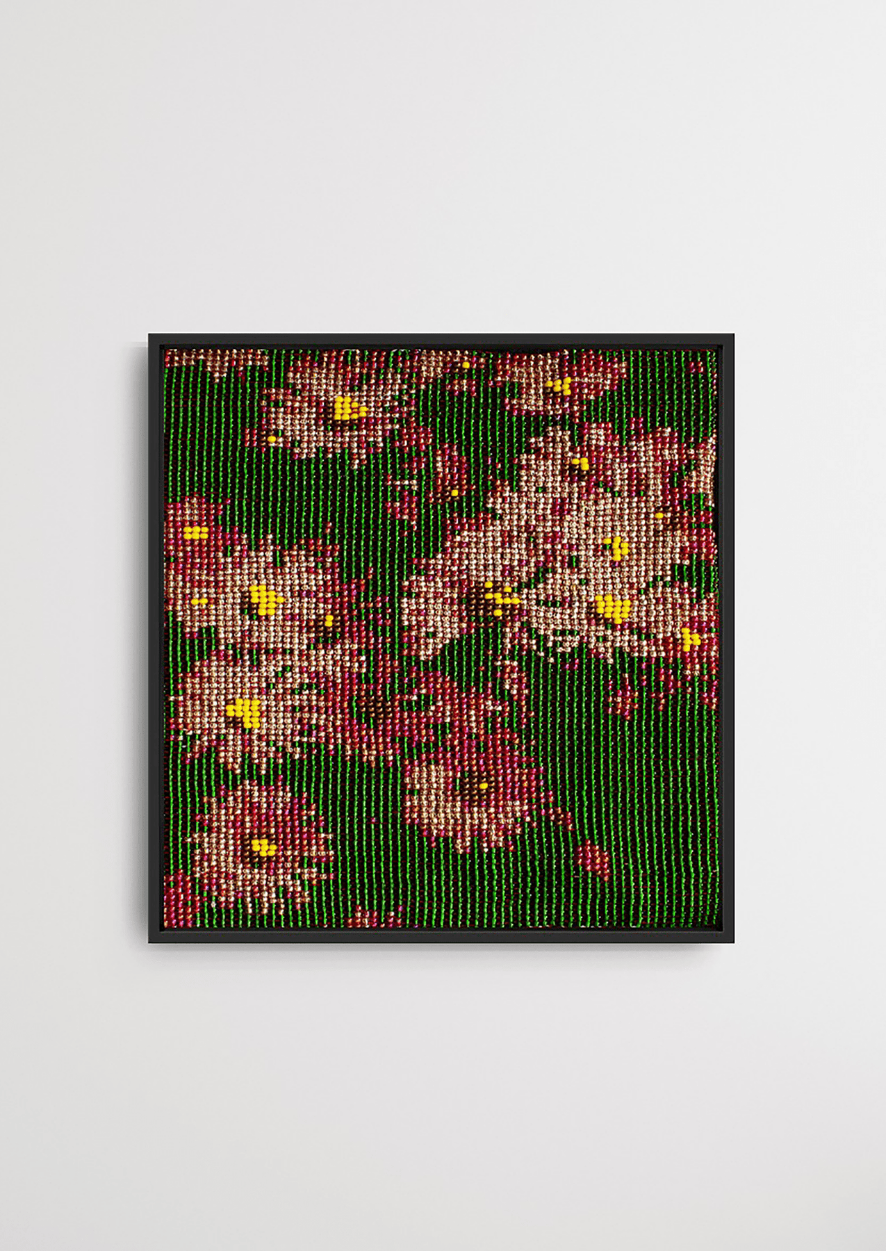 Material: Glass beads, cotton threads stitched onto cotton fabric