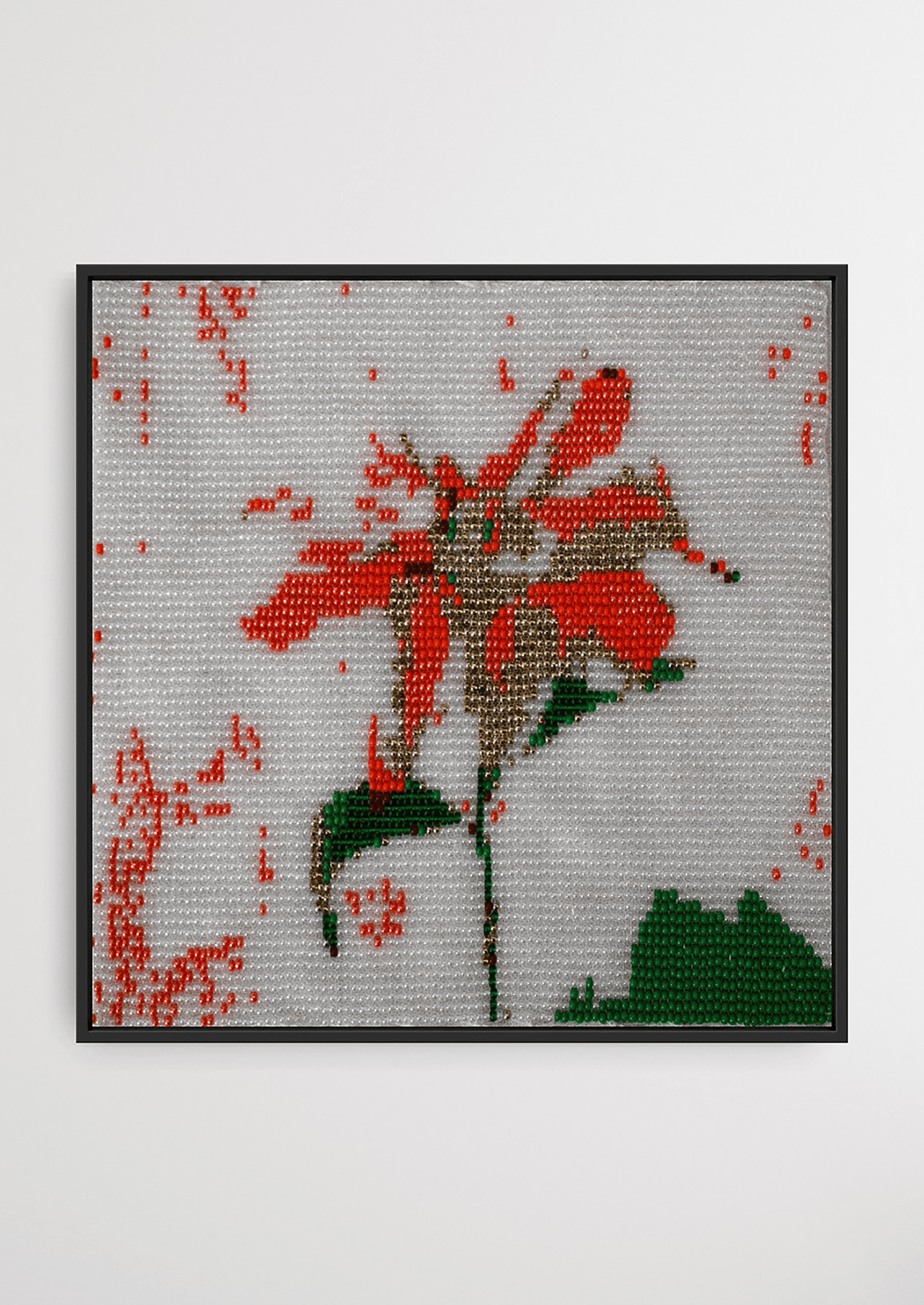 Material: Glass beads, cotton threads stitched onto cotton fabric