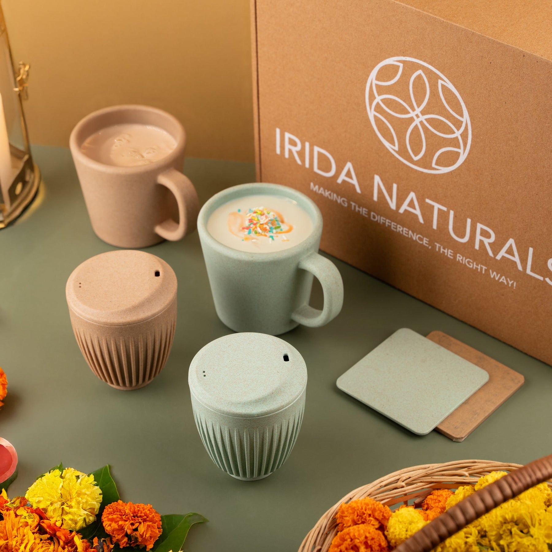 • 2 pcs Rice Husk Mighty Mugs: Sip your favourite drinks from these sturdy, toxin-free mugs made from sustainable rice husk.