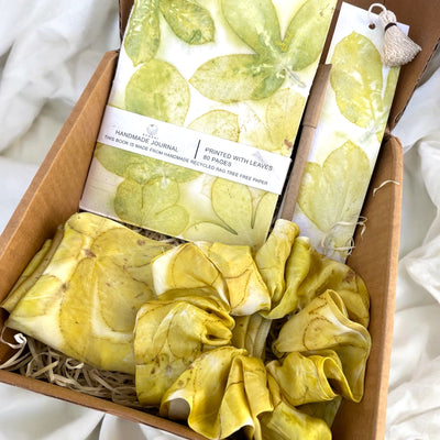 Eco-printed Bemberg Satin Scrunchie- Satin protects the hair preventing wrinkles and split ends.