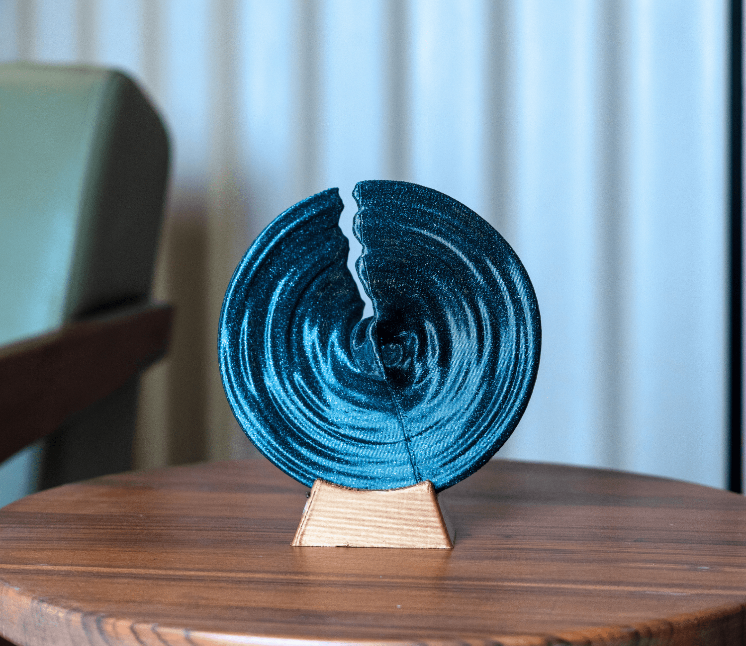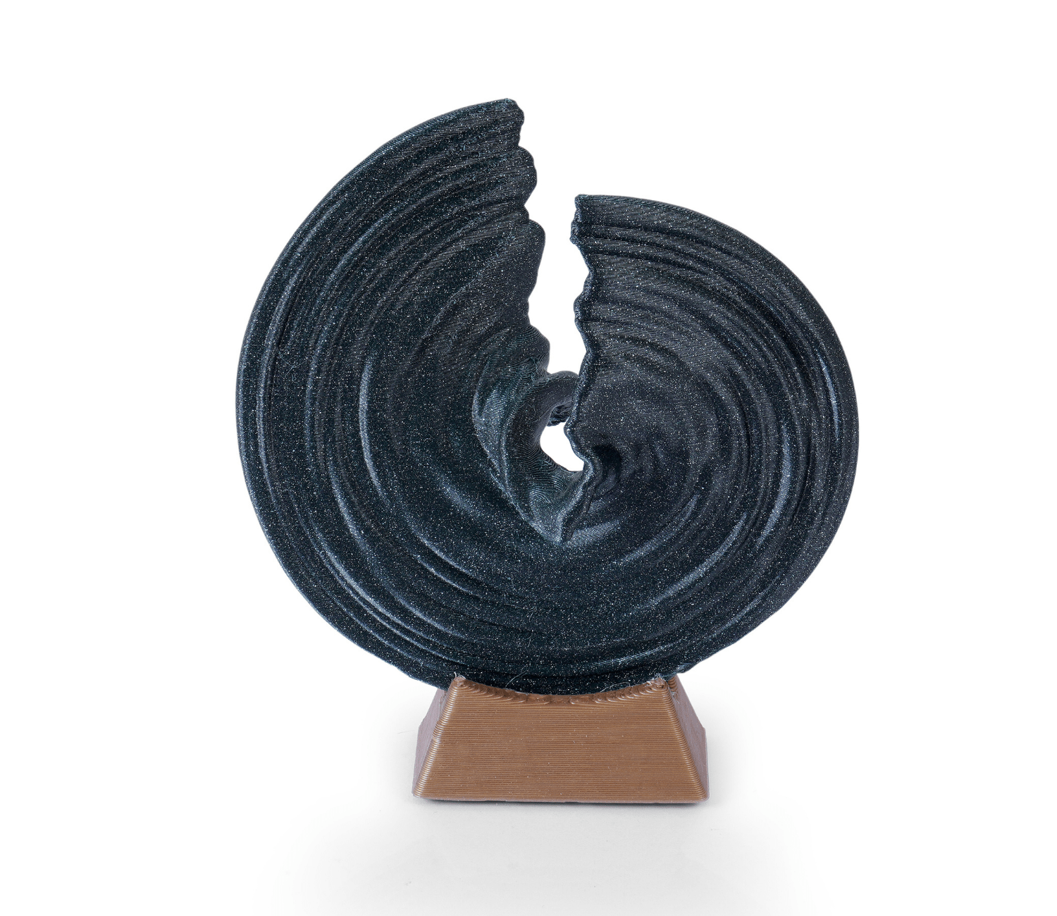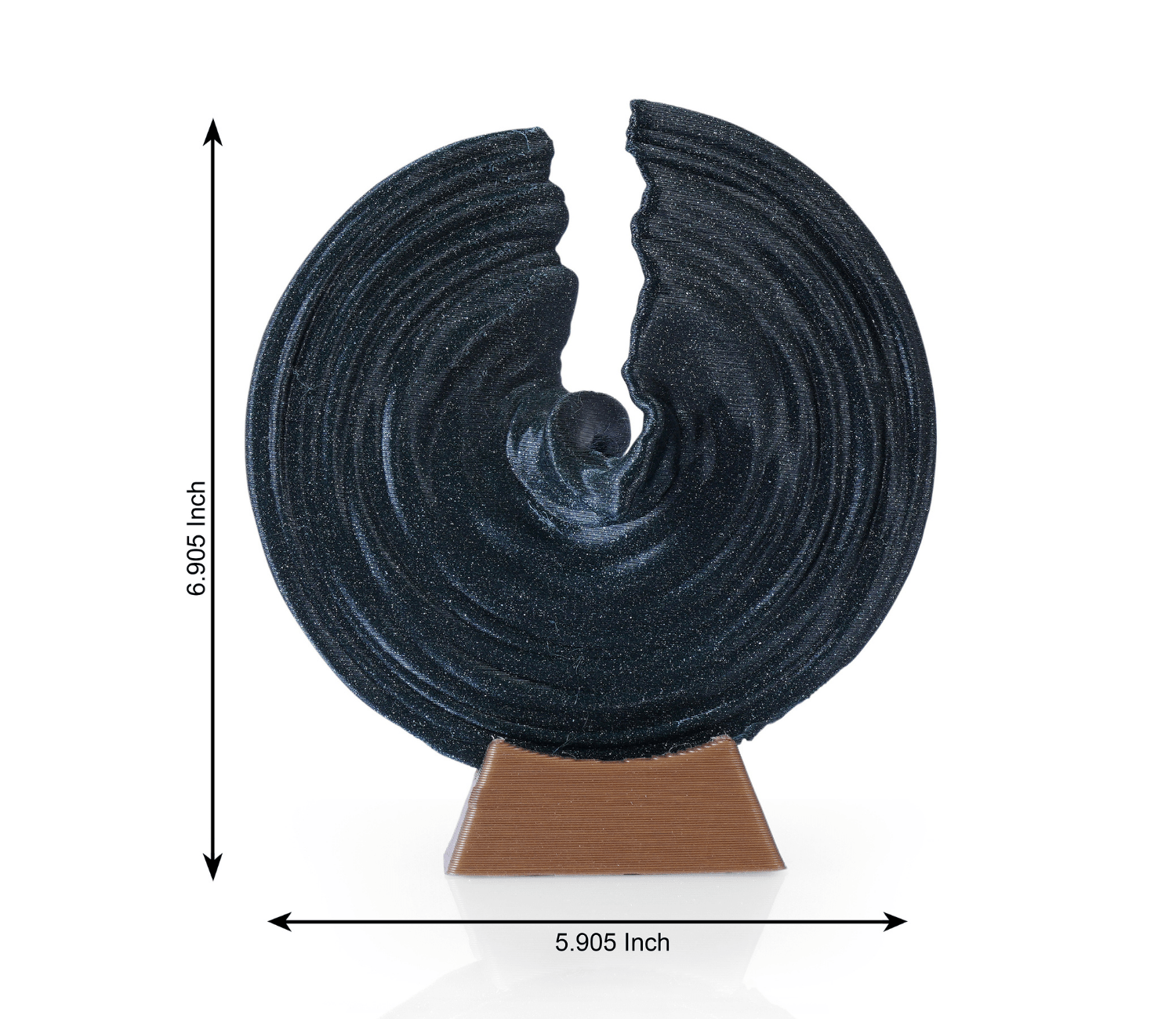 The astrophysics talks of space-time near black hole to be twisted because of immense gravitational acceleration. This is something very hard to imagine but having admiration for the fabrics that govern everything and to make a bold attempt to make a design themed around it, requires imagination beyond comprehension. This helped shape a simplified version of that immense force to be a part of your space. The dark twinkling color is chosen specifically to imply space time and starry sky. The front view gives very close presentation of ‘gravitational lensing’.