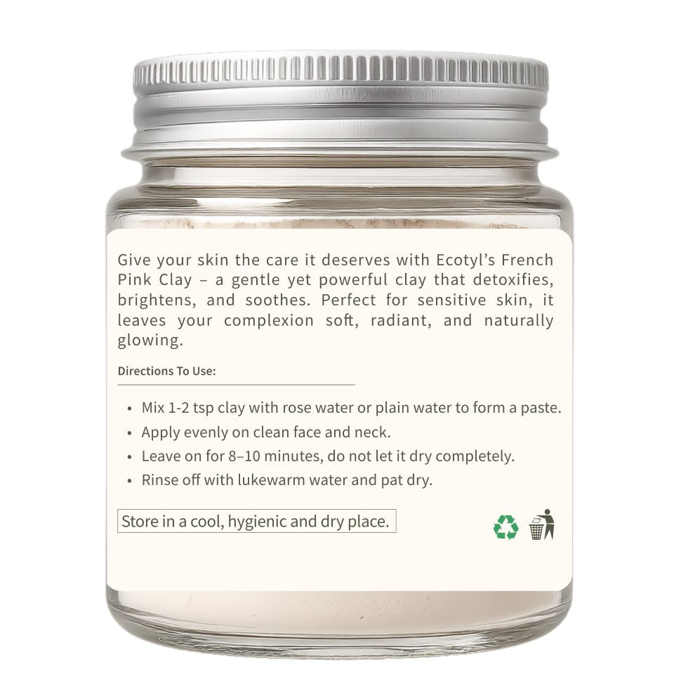Reveal your skin’s natural radiance with Ecotyl’s French Pink Clay - a soothing, mineral-rich blend of red and white clays that detoxifies and nourishes without drying or irritation.