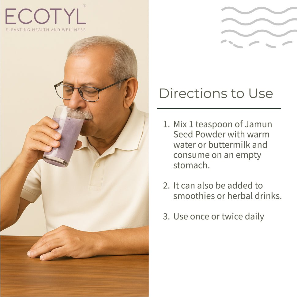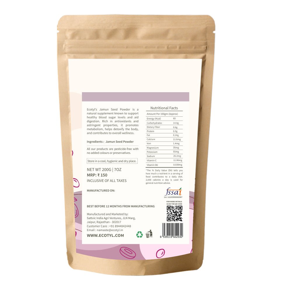 Tap into the time-tested wisdom of Ayurveda with Ecotyl’s Jamun Seed Powder - a natural formulation made from sun-dried seeds of the Indian blackberry, known as Jamun.