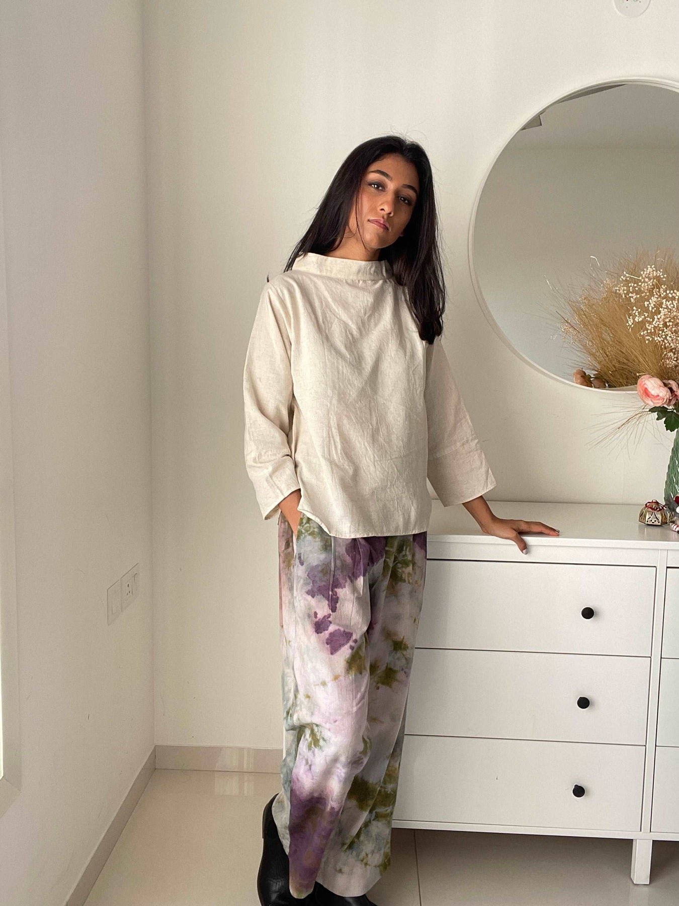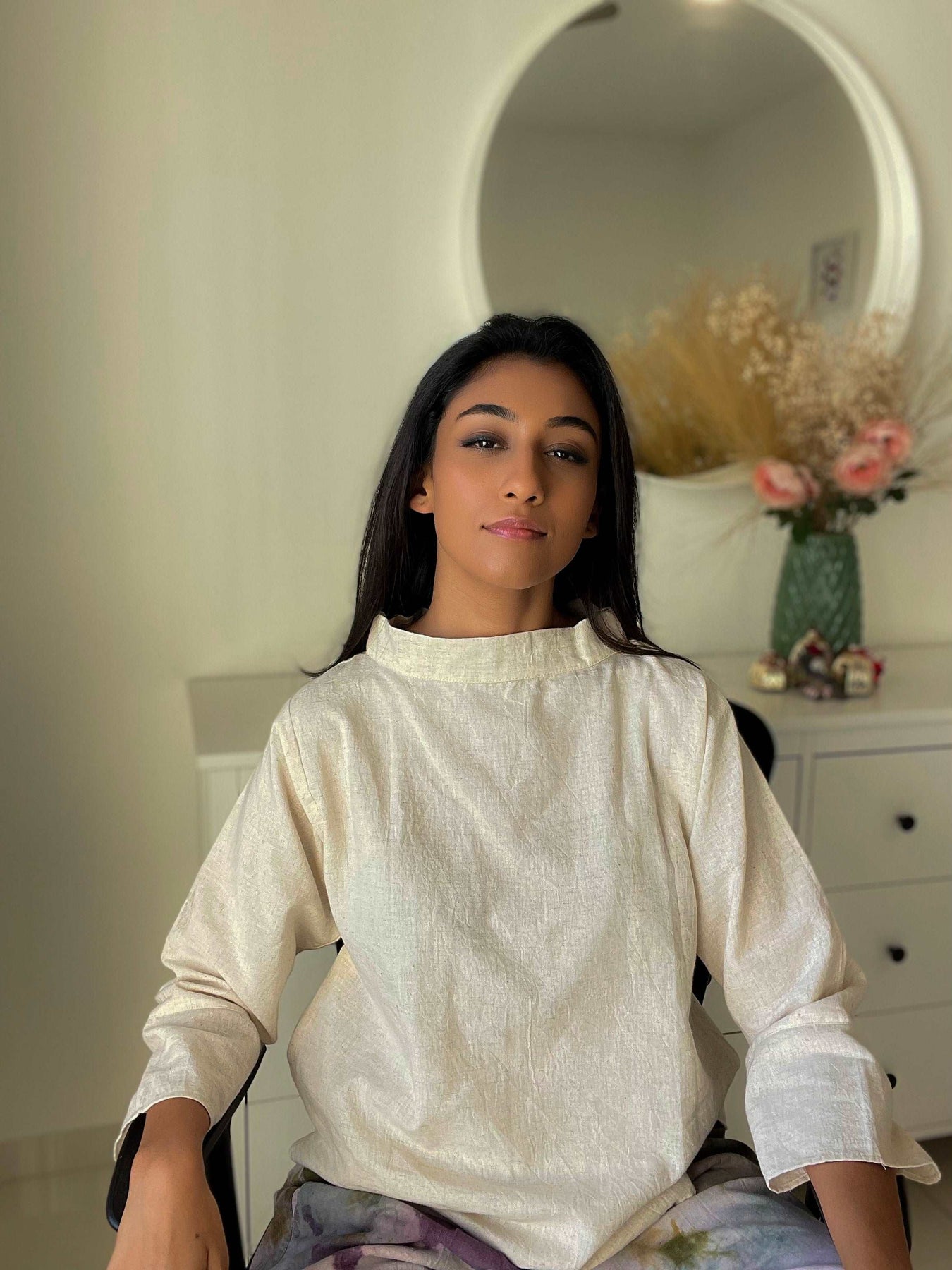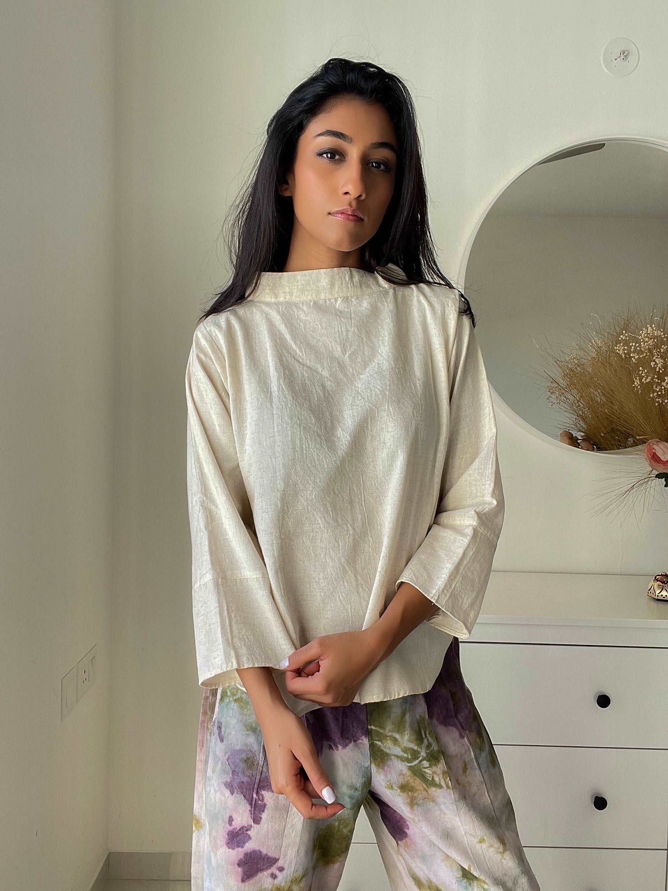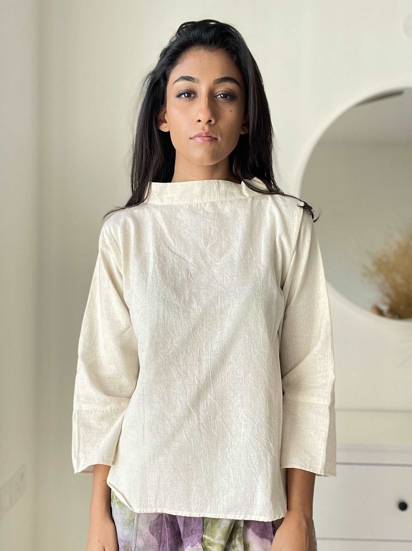 If you love fashion that's as stylish as it is eco-friendly, then look no further than our collared full-sleeved ecru top.