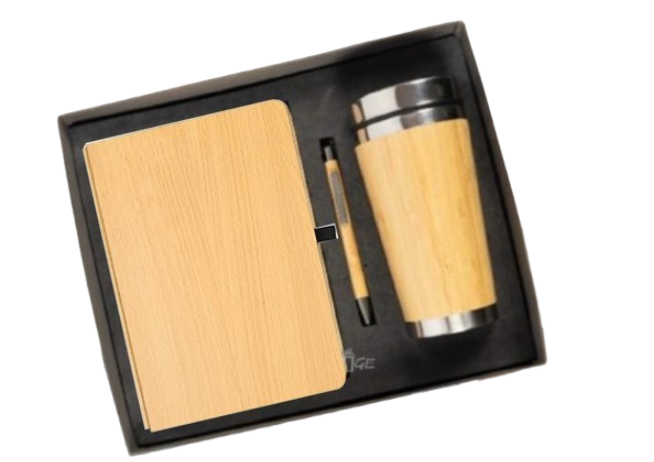 Fuel productivity and style with this beautifully curated gift set featuring a premium wooden-finish coffee mug, a classic notebook, and a matching pen. A perfect blend of aesthetics and functionality — ideal for corporate gifting, client appreciation, or festive hampers.