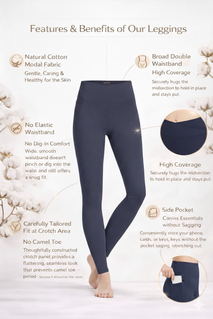 We have created the perfect waistband that provides a secure and buttery fit without any discomfort. This medium support legging is greatly loved for its natural fabric blend for unmatched breathability. The handy pocket on the right can hold medium weight items without feeling weighed down.