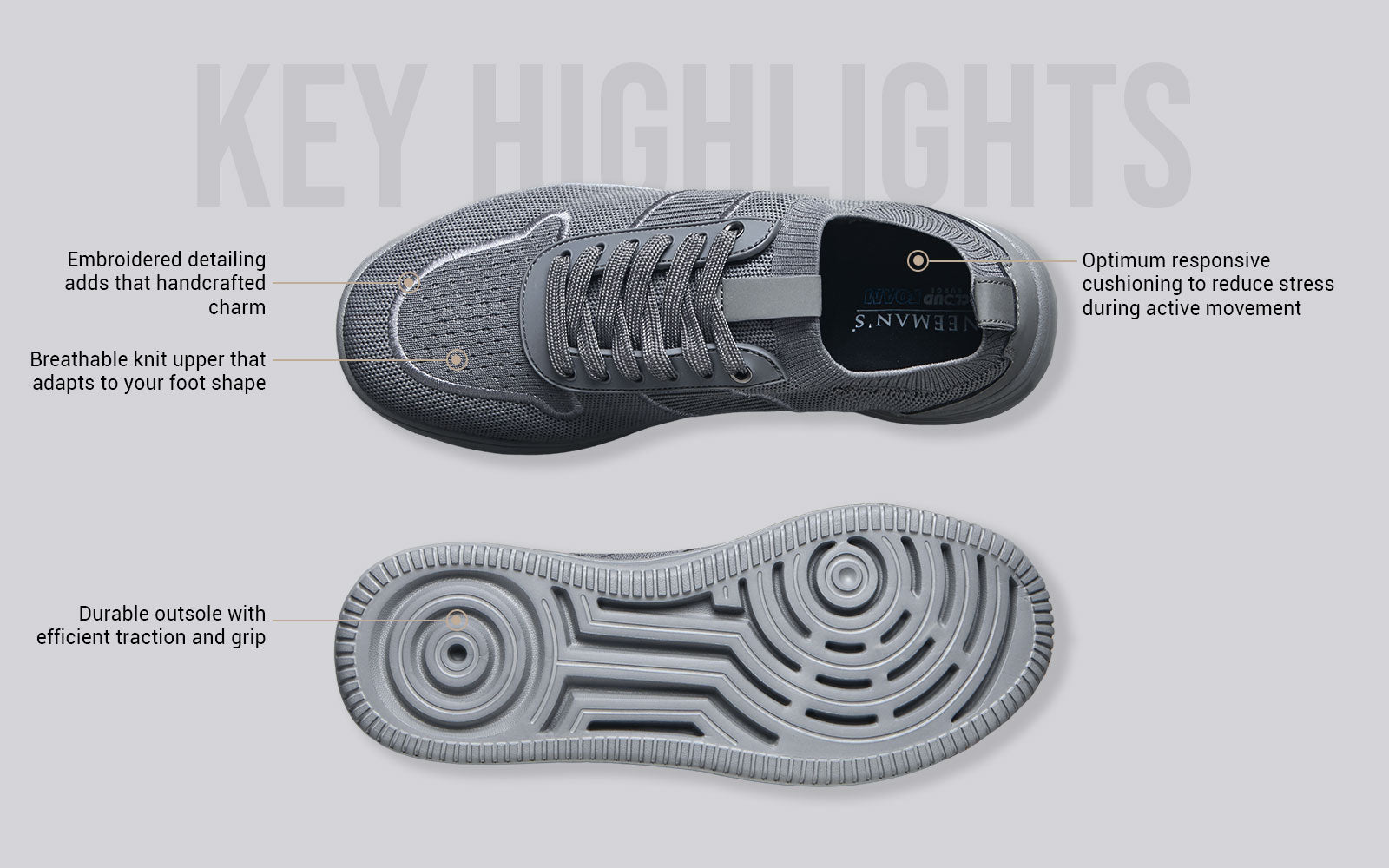 Embroidered Sneakers For Men : Grey