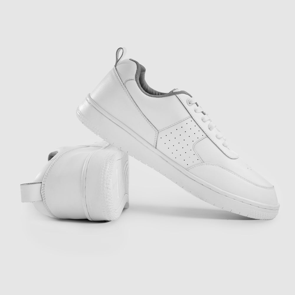 Crafted in smooth white vegan leather with minimal grey accents and a lightweight rubber sole, ACE White brings together modern comfort and timeless appeal. A double-cushioned insole with breathable mesh lining ensures you stay comfortable through long hours without losing sharpness.