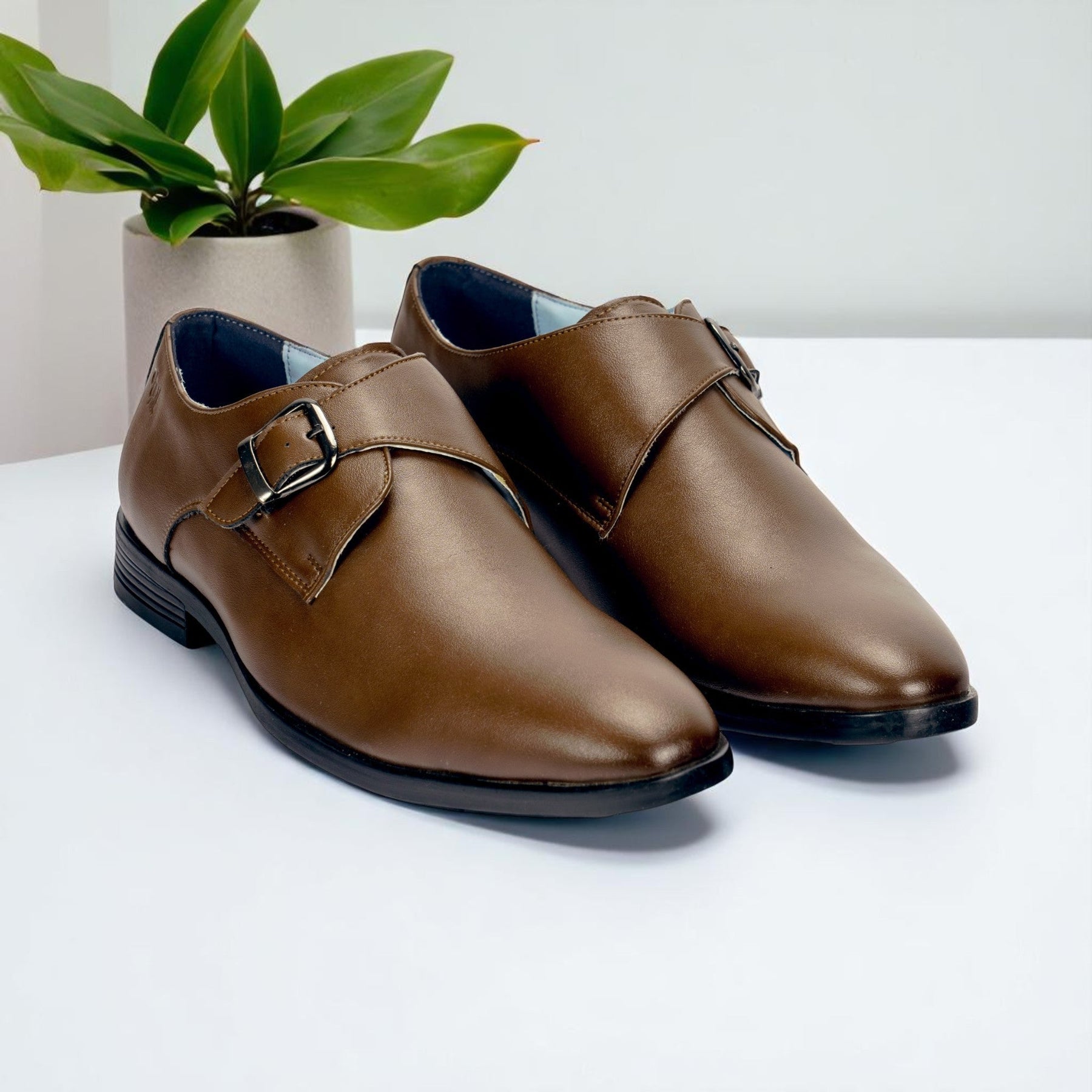 Ethik Monk Knight Brown Formal Shoes for Men | Classic Single Monk Strap | Vegan Leather - Suspire