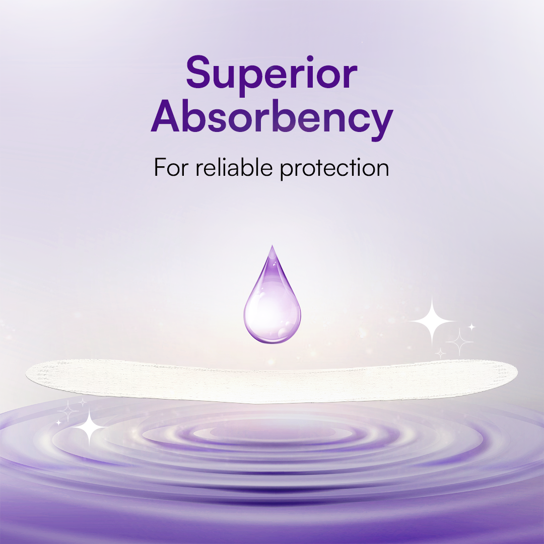 The magic starts with a natural, plant-based top sheet that’s soft, breathable, and seriously kind to your skin. No itching. No rubbing. No surprise rashes. Just comfort that lasts all day (and night). Add a high-absorbency core and a 50% wider back, and leaks simply… don’t show up.