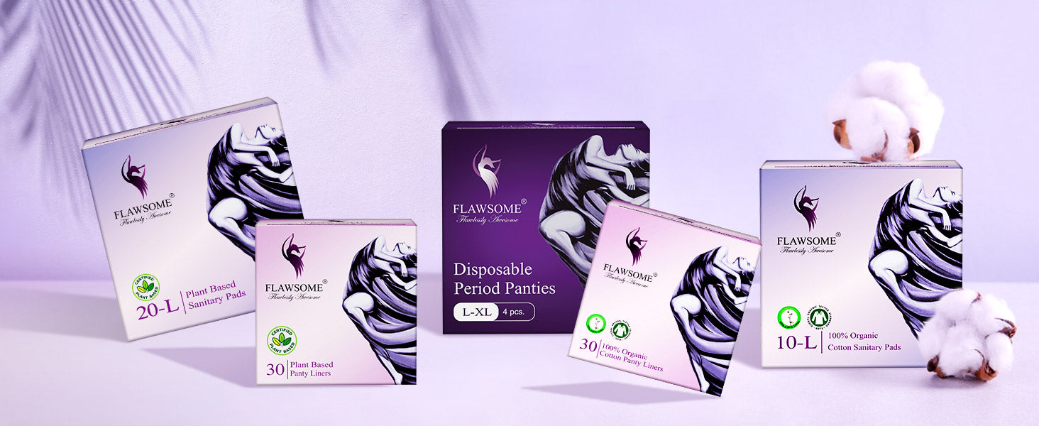 Flawsome Period Combo for Women | XL Cotton Sanitary Pads (Pack of 20) + Cotton Panty Liners (Pack of 30) + Disposable Period Panties Size XL (Pack of 4) | Ultra-Thin, Rash-Free, Toxin-Free, Leak-Proof | With Disposal Cover | For Sensitive Skin