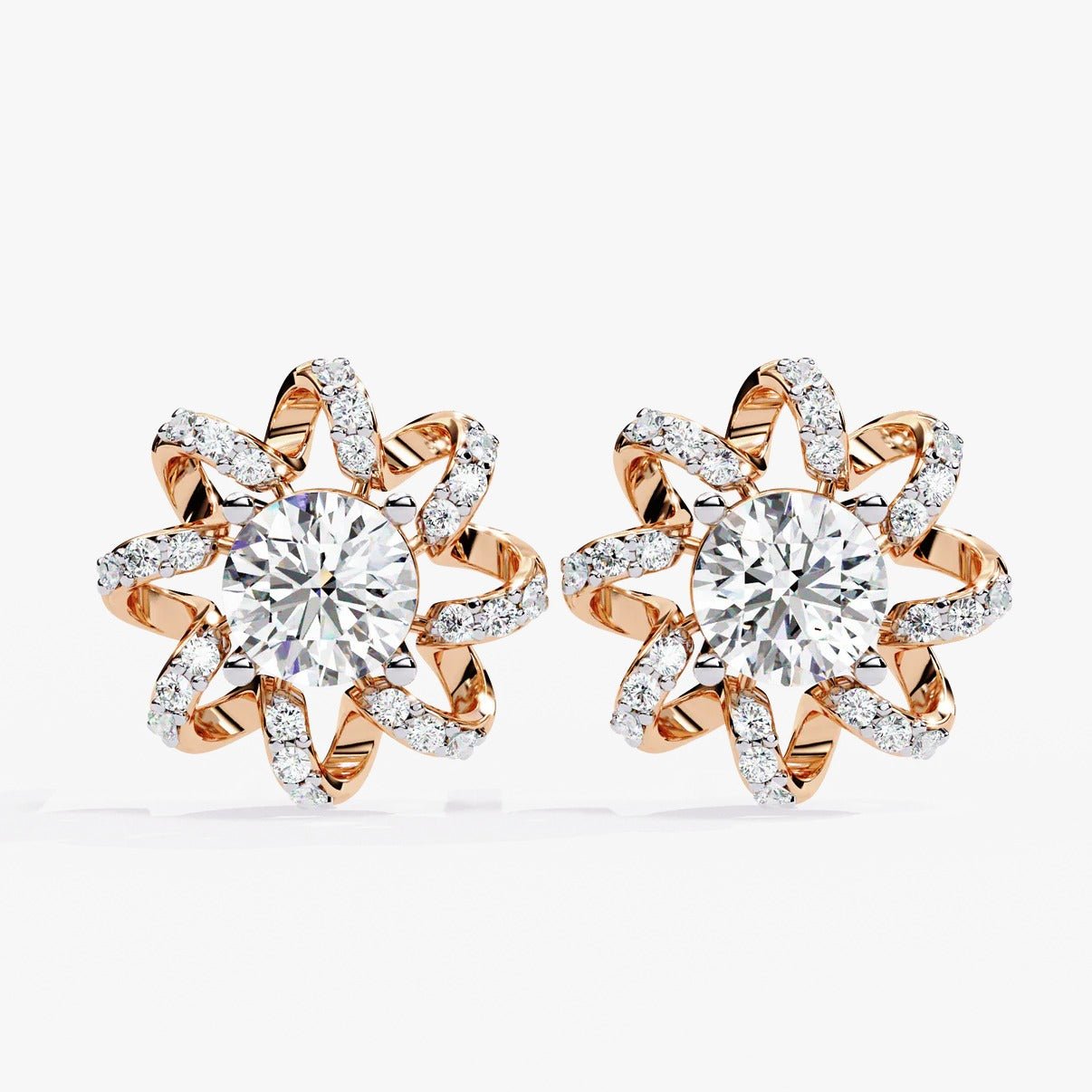 Diamond By Tilesh Floral Swirl Diamond Stud Earrings – A Radiant Statement of Grace - Suspire