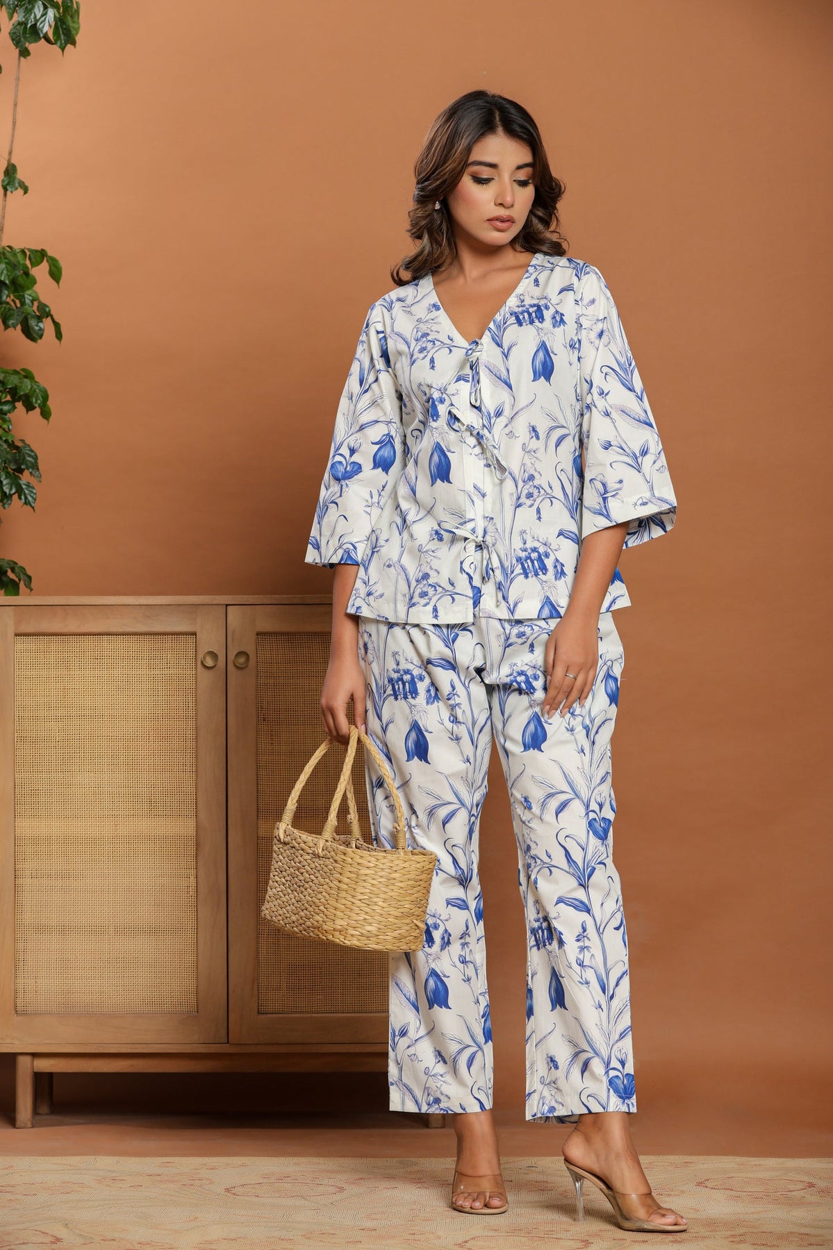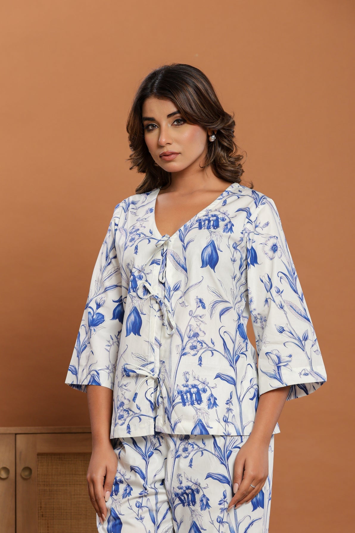 The Floral Toile Sleepwear, inspired by nature, is effortlessly stylish, versatile enough to transition from lounging at home to stepping out in comfort.