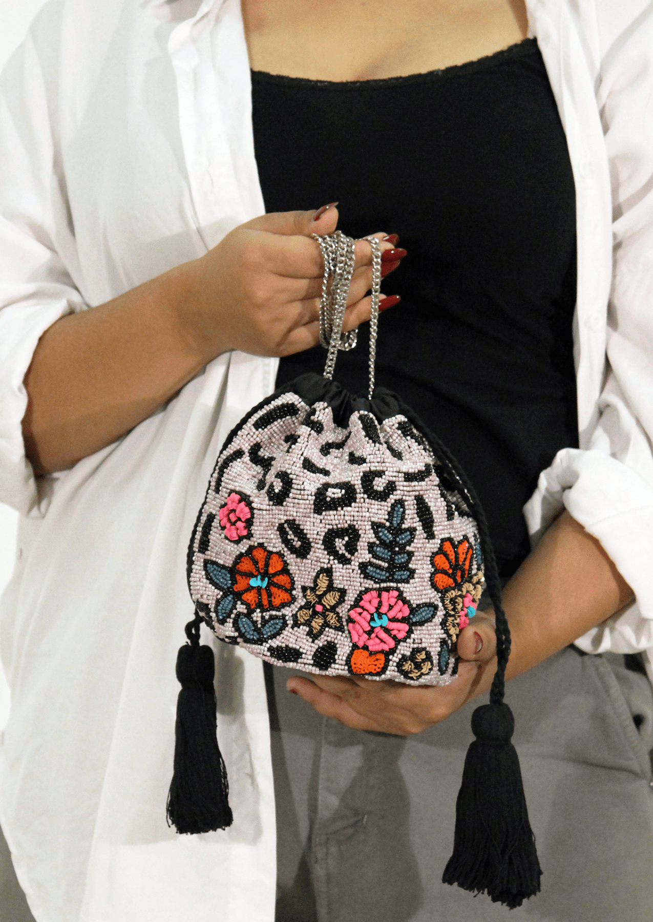 Product details: Transform any ensemble with this exquisite clutch featuring meticulously hand-beaded and sequenced floral motifs in rich hues. Each bead is carefully placed by skilled artisans from Agra, creating a dimensional floral tapestry against a midnight canvas. The classic silhouette pairs perfectly with both traditional and contemporary outfits. Perfect for those who appreciate the poetry of traditional craft with modern sophistication.