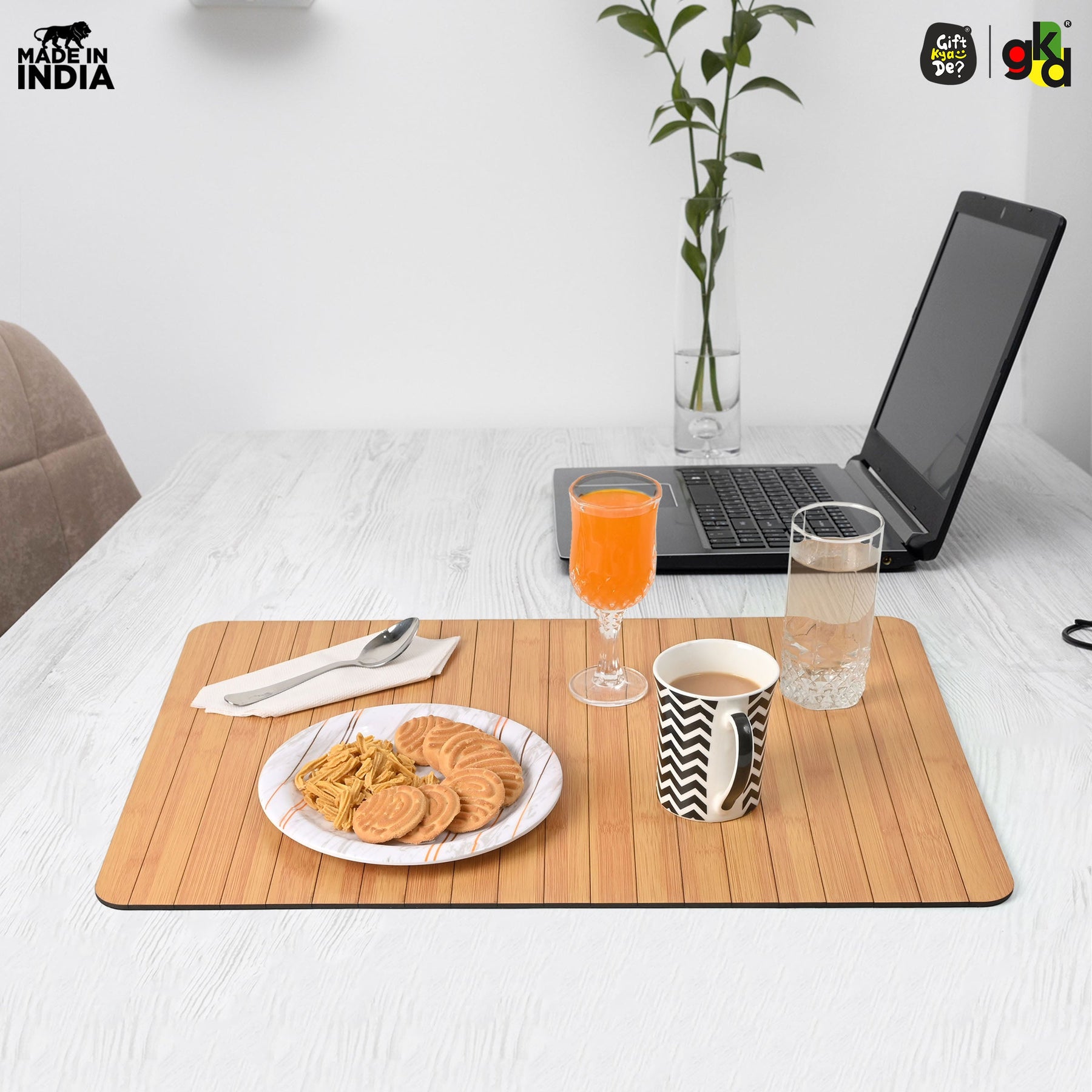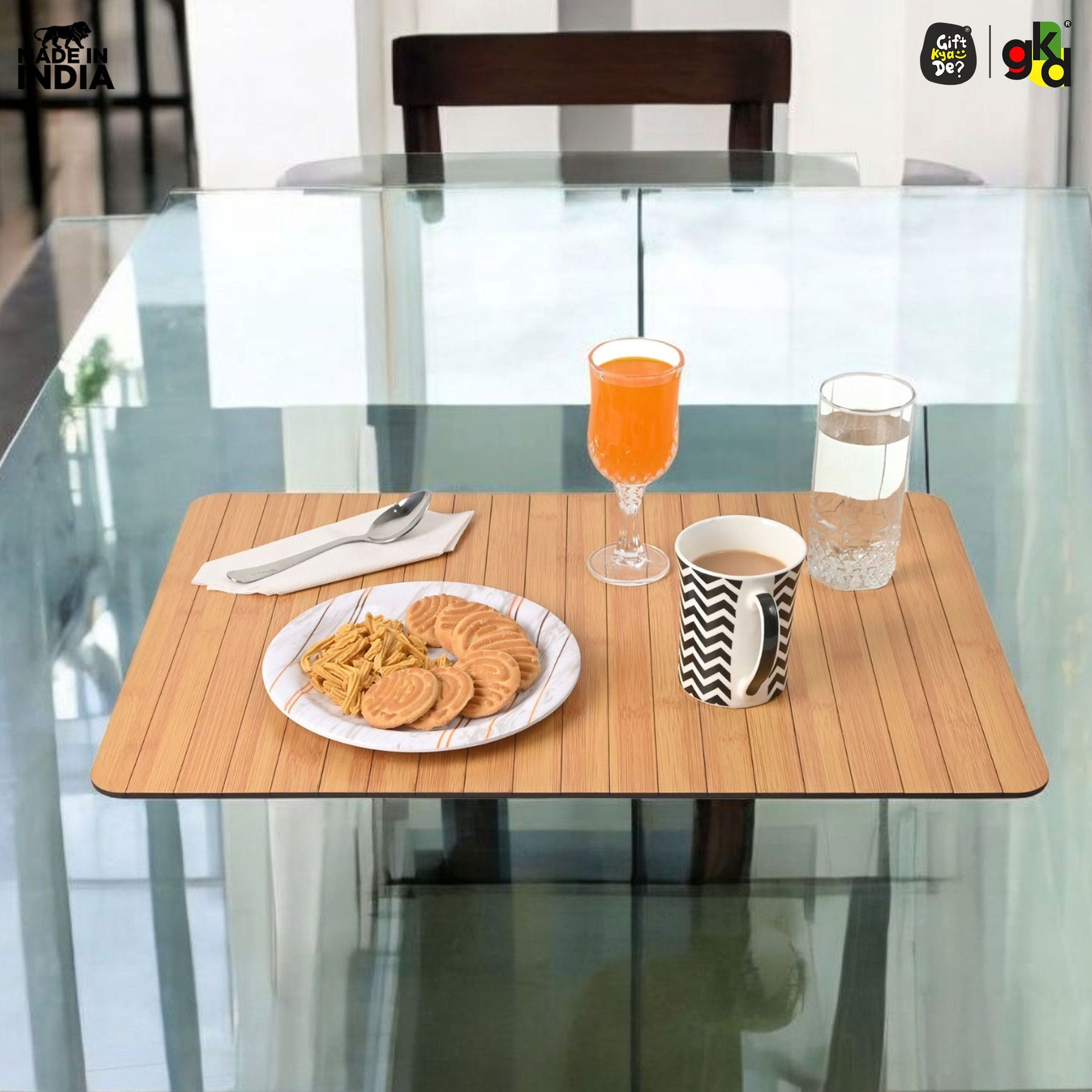 Turn your couch or recliner into a stylish serving space with the Gift Kya De® Sofa Armrest Tray, designed for comfort, function, and elegance. Handcrafted in India using eco-friendly MDF wood, this foldable tray features a beautiful bamboo finish and is available in two convenient sizes to suit different sofa types. Whether you're enjoying a quiet coffee, hosting friends, or working from home, this tray offers a stable, water-resistant surface for your everyday needs. Lightweight, rollable, and easy to clean — it’s the perfect living room essential.